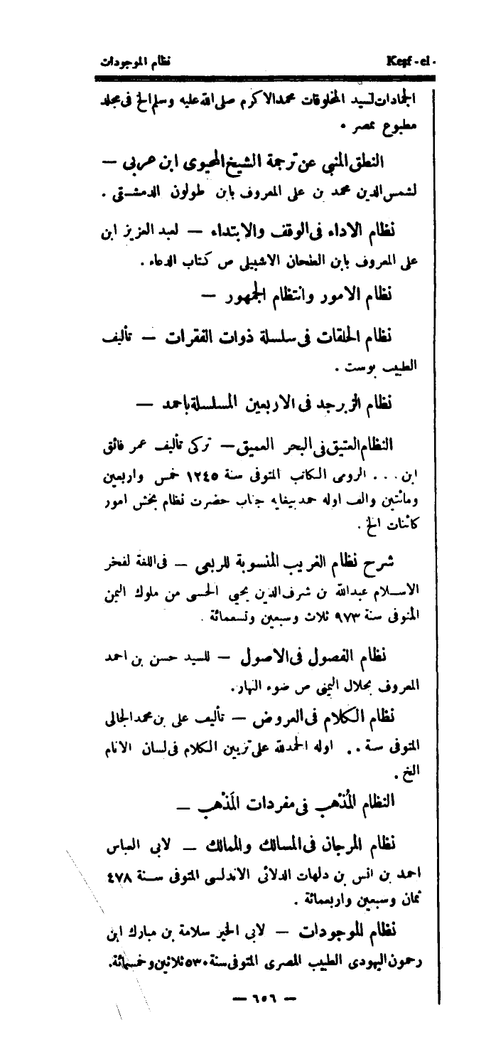 نظام الموجودات - لأبي الخير سلامة بن مبارك ابن رحمون اليهودي الطبيب المصري المتوفى سنة 530 ثلاثين وخمسمائة.