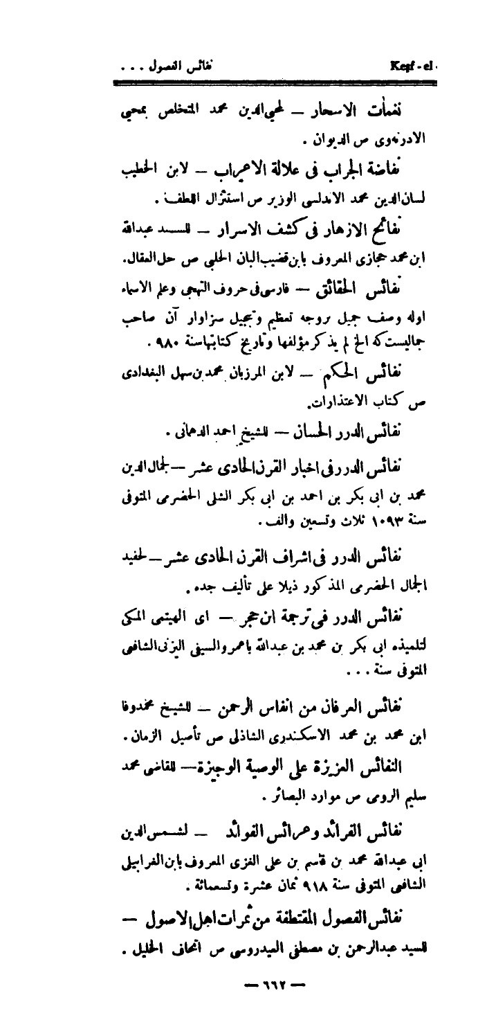 نفائس الفصول المقتطفة من ثمرات أهل الاصول - للسيد عبد الرحمن بن مصطفى العيدروسي ص إتحاف الخليل.