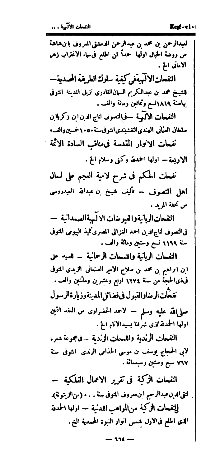 النفحات الإلهية - في التصوف لتاج الدين ابن زكريا ابن سلطان العثماني الهندي النقشبندي المتوفى سنة 1050 خمسين وألف.