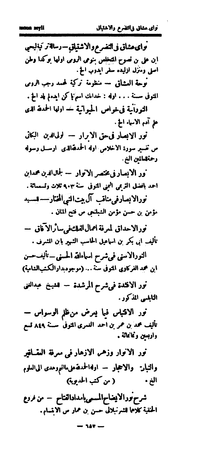 نور الابصار فى مختصر الانوار - لجمال الدين محمد ابن احمد بافضل التريمي اليمني المتوفى سنة 903 ثلاث وتسعمائة.
