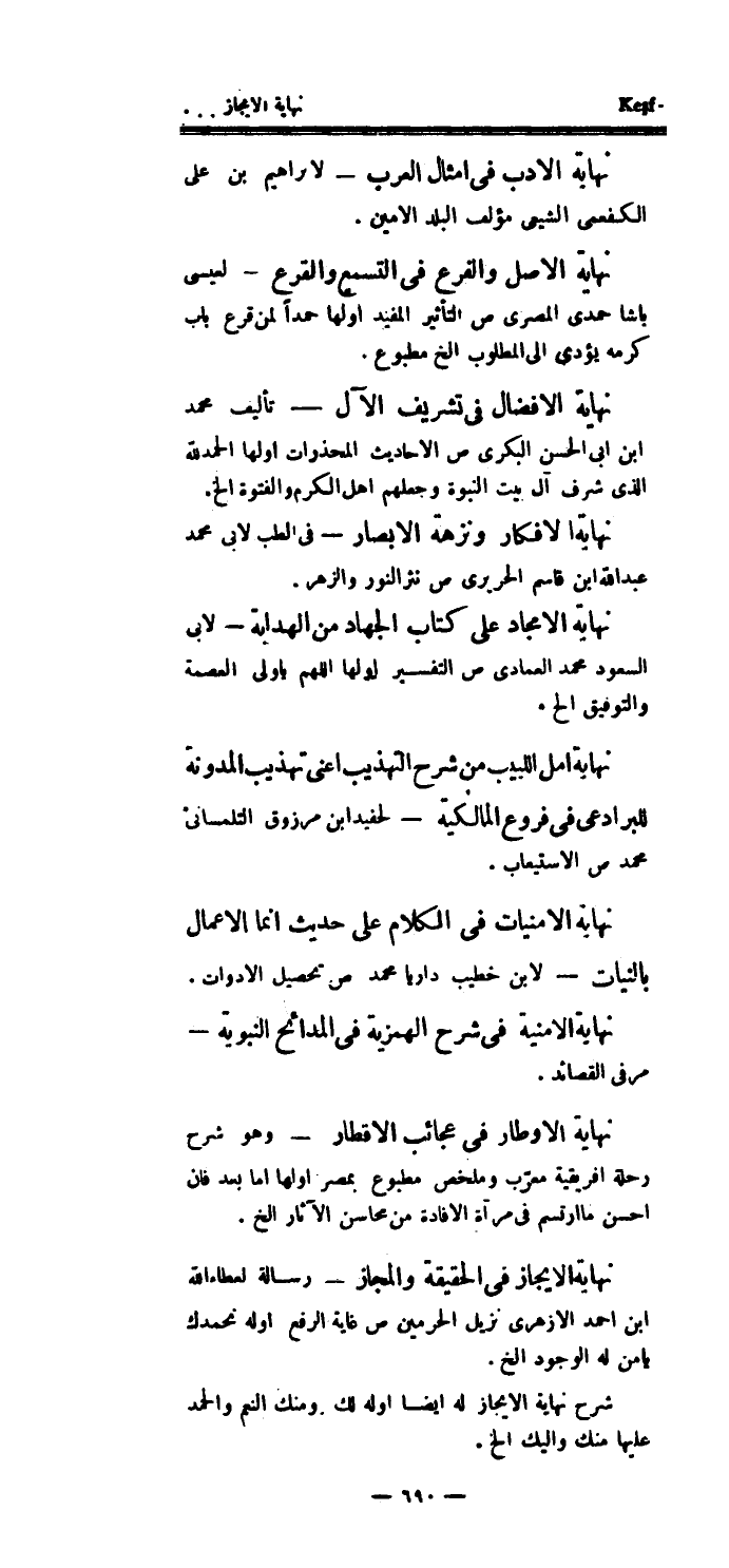 نهاية الإيجاز في الحقيقة والمجاز - رسالة لعطاء الله ابن أحمد الأزهري نزيل الحرمين ص غاية الرفع أوله نحمدك يامن له الوجود الخ.