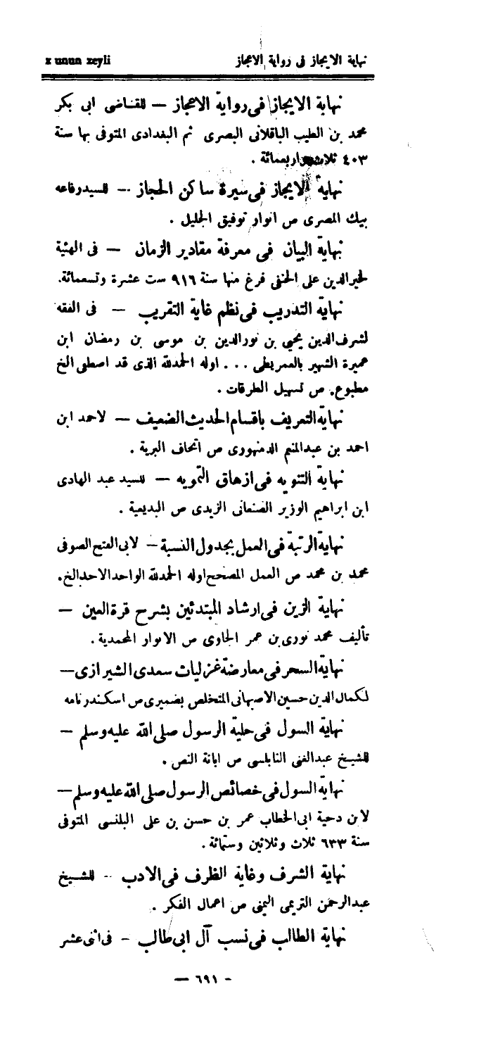 نهاية السحر في معارضة غزليات سعدي الشيرازي - لكمال الدين حسين الأصبهاني المتخلص بضميري ص إسكندر نامه نهاية السول في حلية الرسول صلى الله عليه وسلم - للشيخ عبد الغنى النابلسي ص إبانة النص.