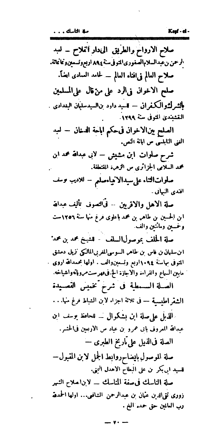 صلة الأهل والأقربين - في التصوف تأليف عبد الله ابن الحسين بن طاهر بن محمد باعلوي فرغ منها سنة 1256 ست وخمسين ومائتين والف.