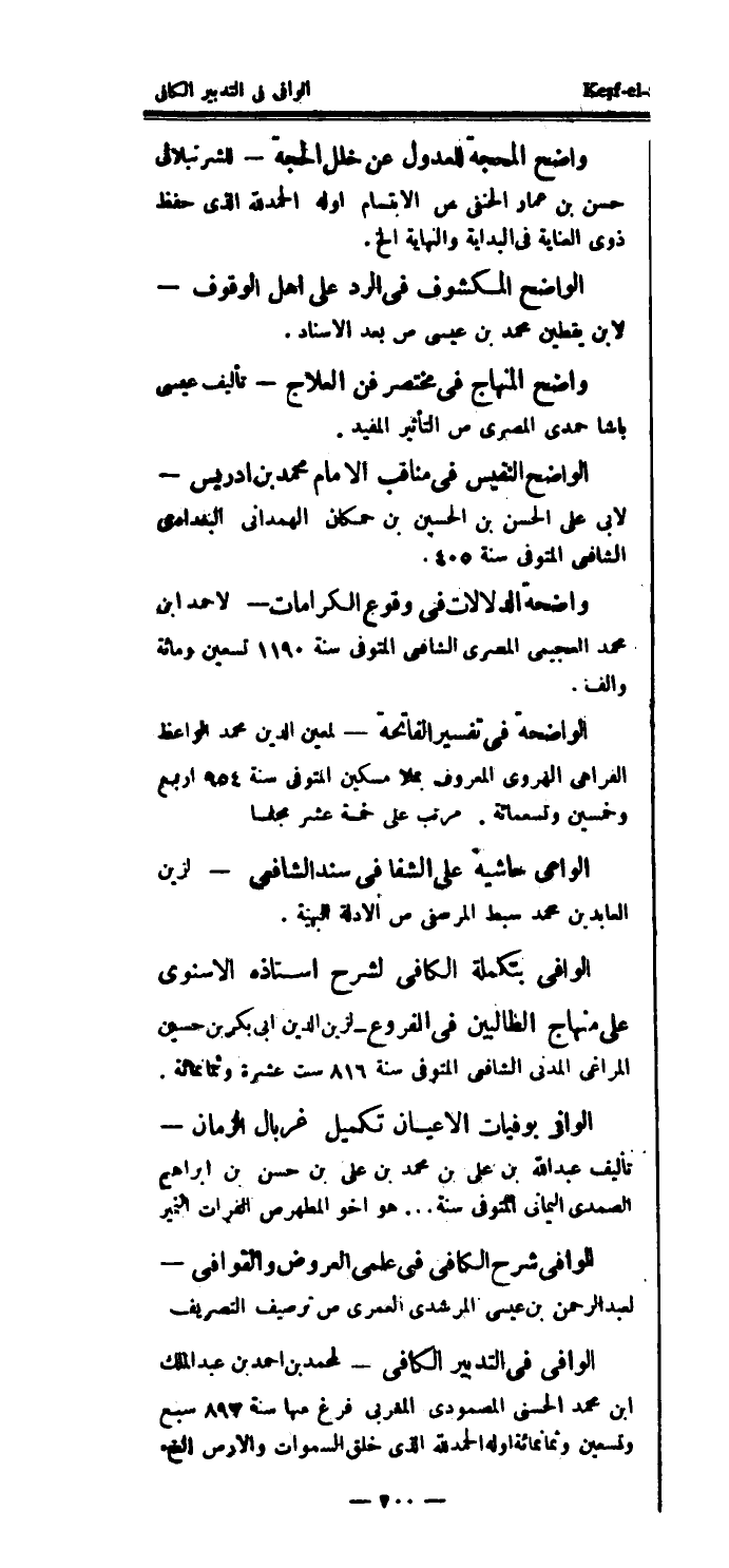 الوافي بوفيات الأعيان تكميل غربال الزمان تأليف عبد الله بن علي بن محمد بن علي بن حسن بن إبراهيم الصمدي اليماني المتوفى سنة ... هو أخو المطهر ص الفرات النمير الوافي شرح الكافي في علمي العروض والقوافي -