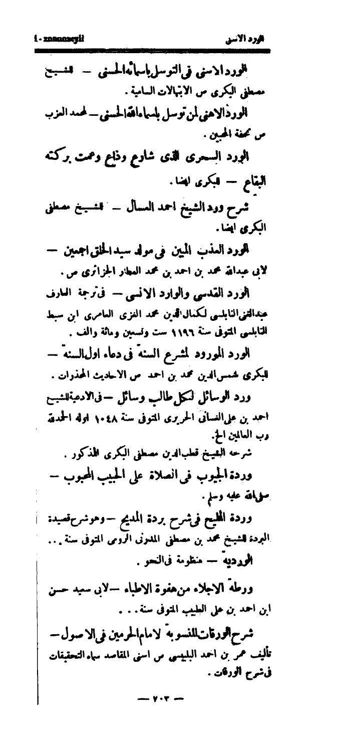 الورد الأهنى لمن توسل بأسماء الله الحسنى - لمحمد العزب ص تحفة المحبين.