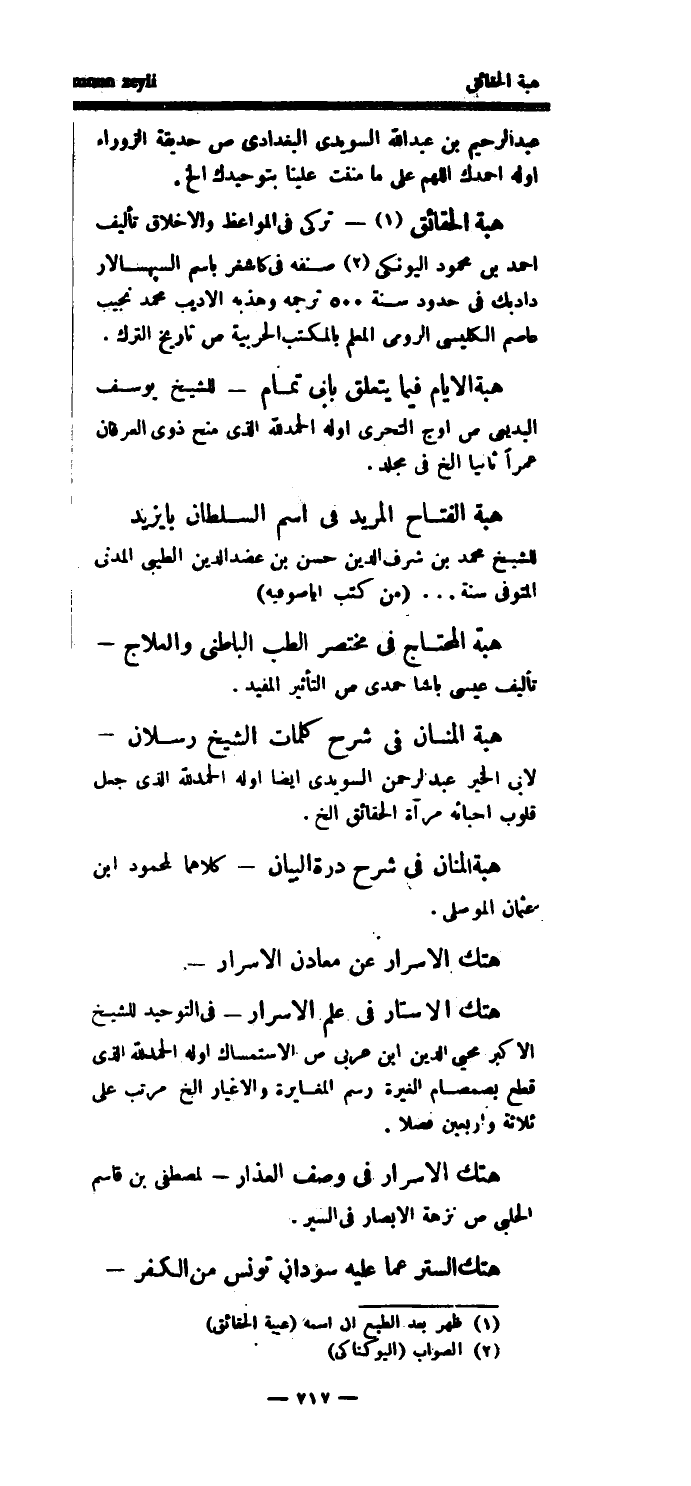 هبة الحقائق (1) - تركى في المواعظ والأخلاق تأليف احمد بن محمود اليونكي (2) صنفه في كاشغر باسم السپهسالار دادبك في حدود سنة 500 ترجمه وهذبه الأديب محمد نجيب عاصم الكليسي الرومي المعلم بالمكتب الحربية ص تاريخ الترك.