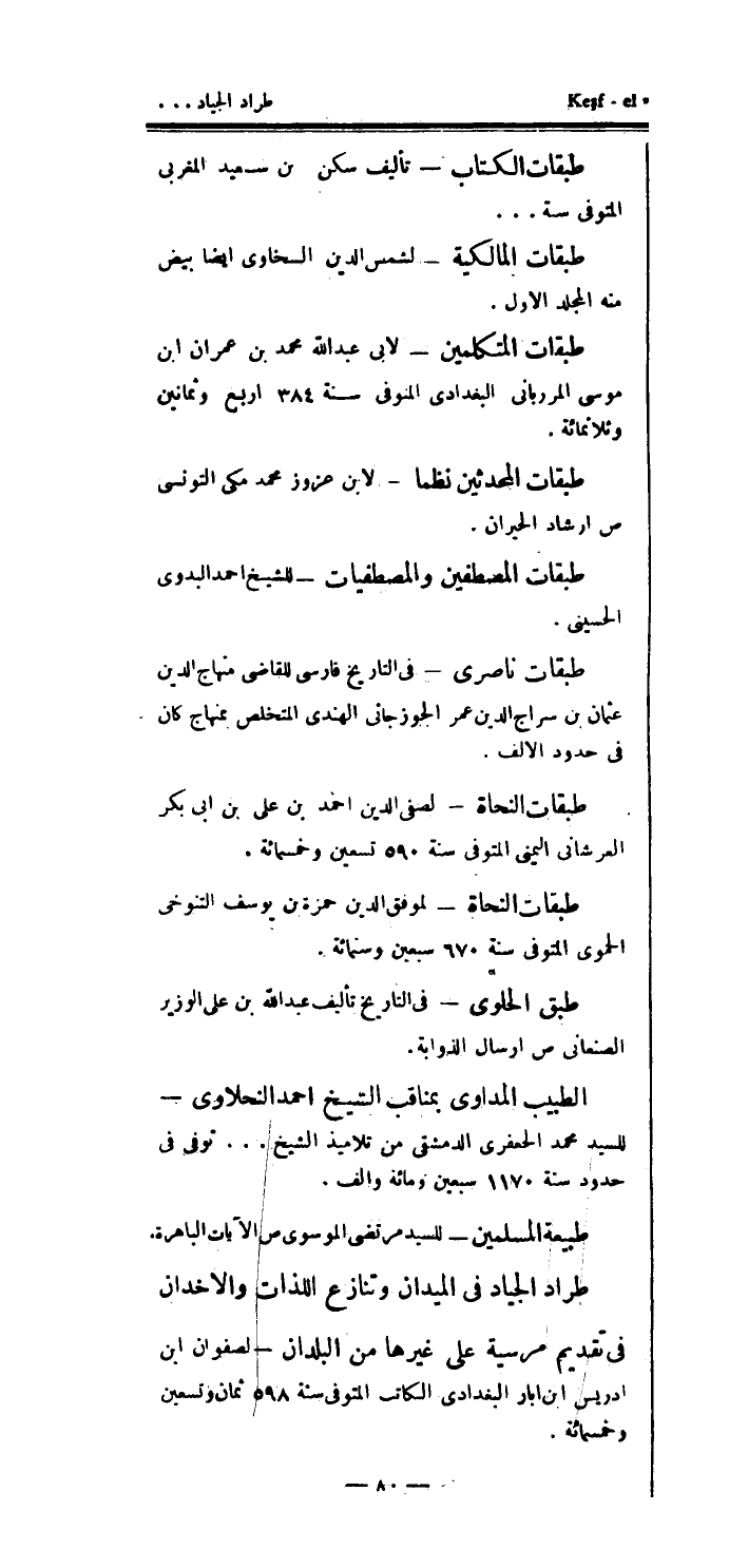 طبقات الكتاب - تأليف سكن بن سعيد المغربي المتوفى سنة ... طبقات المالكية - لشمس الدين السخاوي أيضاً بيض منه المجلد الأول.