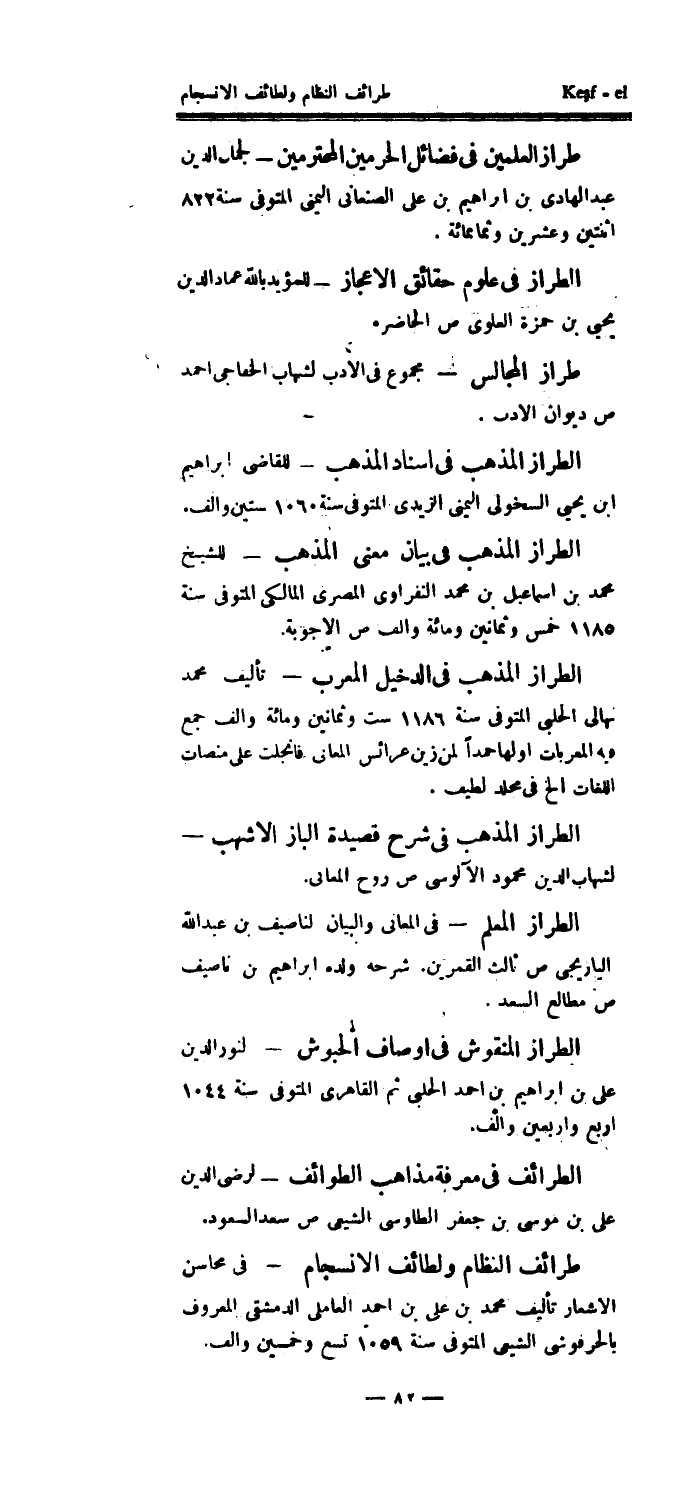 طرائف النظام ولطائف الانسجام - في محاسن الأشعار تأليف محمد بن علي بن أحمد العاملي الدمشقي المعروف بالحرفوشي الشيعي المتوفى سنة 1059 تسع وخمسين وألف.