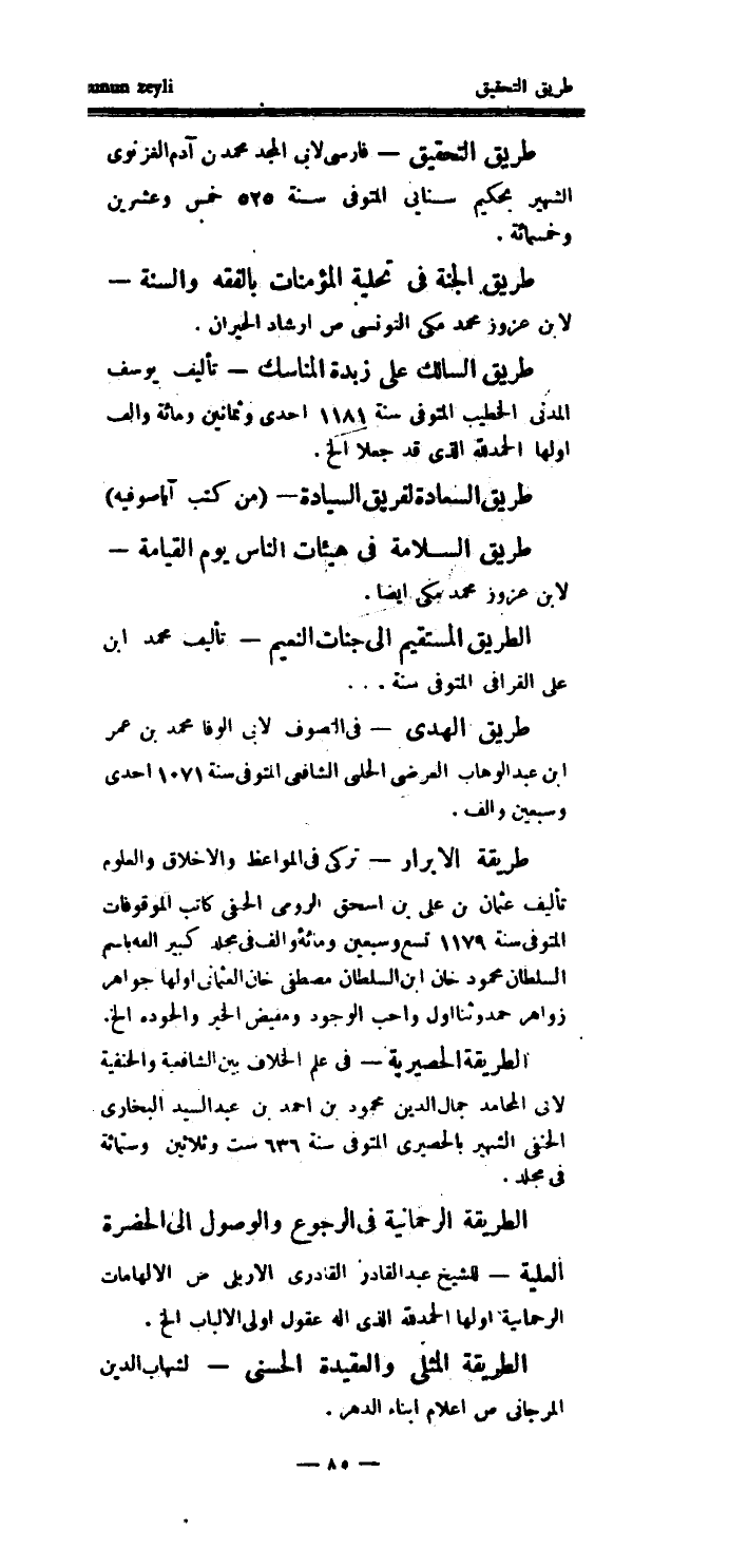 الطريق المستقيم إلى جنات النعيم - تأليف محمد ابن علي القرافي المتوفى سنة ... طريق الهدى - في التصوف لأبي الوفا محمد بن عمر ابن عبد الوهاب العرضي الحلبي الشافعي المتوفى سنة 1071 إحدى