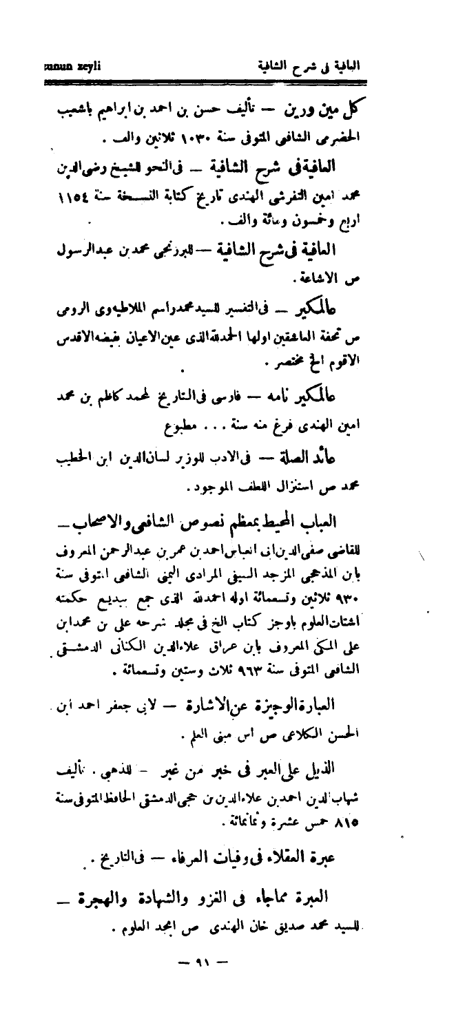 عالمكير نامه - فارسي في التاريخ لمحمد كاظم بن محمد أمين الهندي فرغ منه سنة ... مطبوع عائد الصلة - في الأدب للوزير لسان الدين ابن الخطيب محمد ص استنزال اللطف الموجود.