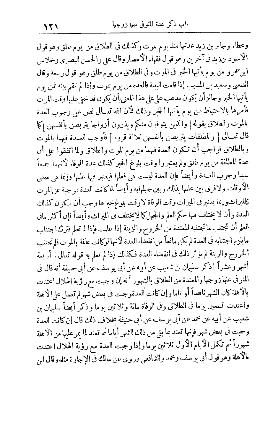 وَعَطَاءٌ وَجَابِرُ بْنُ زَيْدٍ عِدَّتُهَا مُنْذُ يَوْمِ يَمُوتُ وَكَذَلِكَ فِي الطَّلَاقِ مِنْ يَوْمِ طَلَّقَ وهو قول الأسود بن زيد فِي آخَرِينَ وَهُوَ قَوْلُ فُقَهَاءِ الْأَمْصَارِ