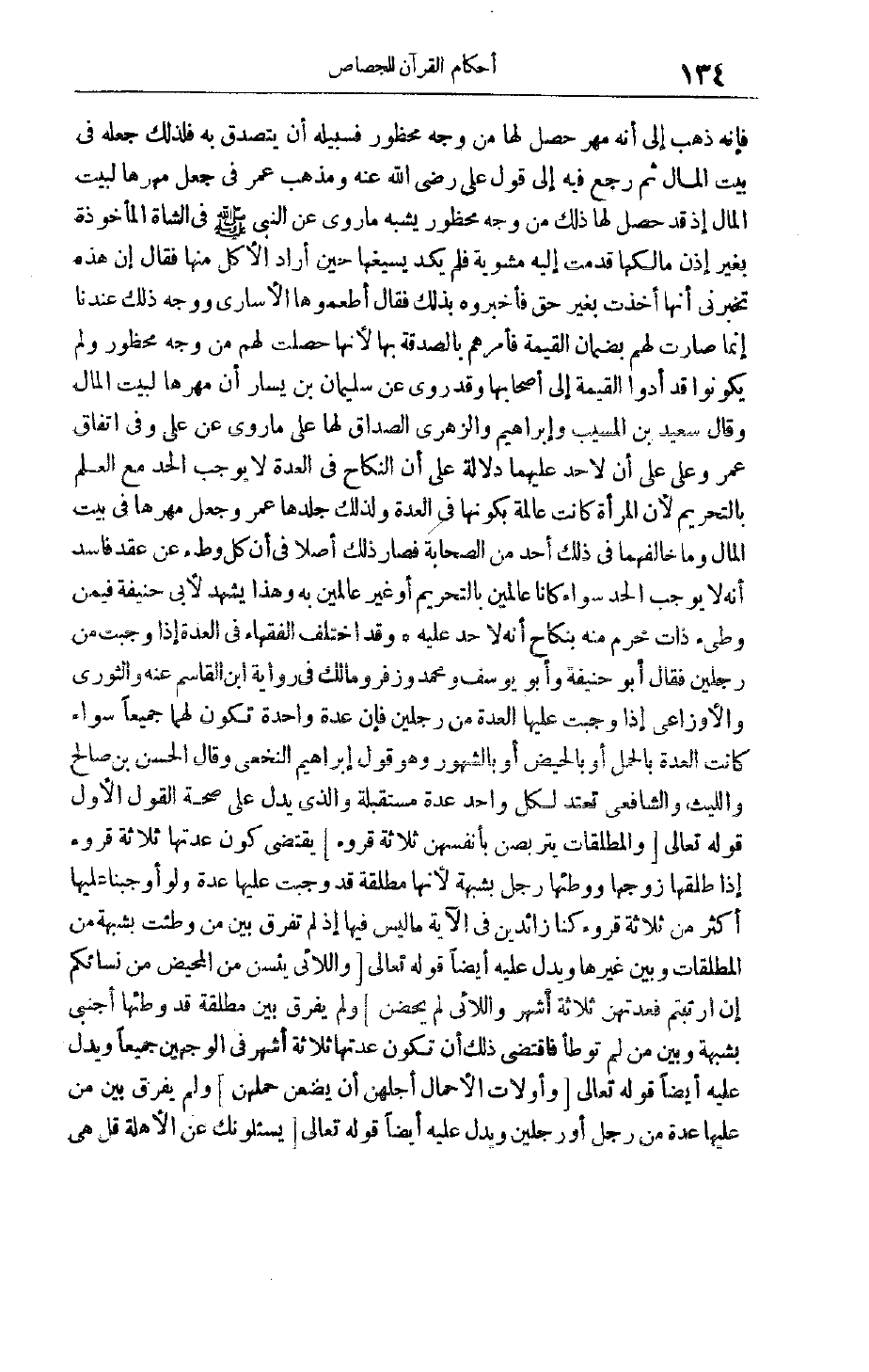 ووجه ذلك عندنا إنما صَارَتْ لَهُمْ بِضَمَانِ الْقِيمَةِ فَأَمَرَهُمْ بِالصَّدَقَةِ بِهَا لِأَنَّهَا حَصَلَتْ لَهُمْ مِنْ وَجْهٍ مَحْظُورٍ وَلَمْ يَكُونُوا قَدْ أَدَّوْا الْقِيمَةَ إلَى أَصْحَابِهَا وَقَدْ رُوِيَ عَنْ سُلَيْمَانَ بْنِ يَسَارٍ أَنَّ مَهْرَهَا لِبَيْتِ الْمَالِ وَقَالَ سَعِيدُ بْنُ الْمُسَيِّبِ وَإِبْرَاهِيمُ وَالزُّهْرِيُّ الصَّدَاقُ لَهَا عَلَى مَا رُوِيَ عَنْ عَلِيٍّ وَفِي اتِّفَاقِ عُمَرَ وَعَلِيٍّ عَلَى أَنْ لاحد عَلَيْهِمَا دَلَالَةٌ عَلَى أَنَّ النِّكَاحَ فِي الْعِدَّةِ لَا يُوجِبُ الْحَدَّ مَعَ الْعِلْمِ بِالتَّحْرِيمِ لِأَنَّ الْمَرْأَةَ كَانَتْ عَالِمَةً بِكَوْنِهَا فِي الْعِدَّةِ وَلِذَلِكَ جَلَدَهَا عُمَرُ وَجَعَلَ مَهْرَهَا فِي بَيْتِ الْمَالِ وَمَا خَالَفَهُمَا فِي ذَلِكَ أَحَدٌ مِنْ الصَّحَابَةِ فَصَارَ ذَلِكَ أَصْلًا فِي أَنَّ كُلَّ وَطْءٍ عَنْ عَقْدٍ فَاسِدٍ أَنَّهُ لَا يُوجِبُ الْحَدَّ سَوَاءً كَانَا عَالِمَيْنِ بِالتَّحْرِيمِ أَوْ غَيْرَ عَالِمَيْنِ بِهِ وَهَذَا يَشْهَدُ لِأَبِي حَنِيفَةَ فِيمَنْ وَطِئَ ذَاتَ مَحْرَمٍ مِنْهُ بِنِكَاحٍ أَنَّهُ لَا حَدَّ عَلَيْهِ وَقَدْ اخْتَلَفَ الْفُقَهَاءُ فِي الْعِدَّةِ إذَا وَجَبَتْ مِنْ رَجُلَيْنِ فَقَالَ أَبُو حَنِيفَةَ وَأَبُو يُوسُفَ وَمُحَمَّدٌ وَزُفَرُ وَمَالِكٌ فِي رِوَايَةِ ابْنِ الْقَاسِمِ عَنْهُ وَالثَّوْرِيُّ وَالْأَوْزَاعِيُّ إذَا وَجَبَتْ عَلَيْهَا الْعِدَّةُ مِنْ رَجُلَيْنِ فَإِنَّ عِدَّةً وَاحِدَةً تَكُونُ لَهُمَا جَمِيعًا سَوَاءً كَانَتْ الْعِدَّةُ بِالْحَمْلِ أَوْ بِالْحَيْضِ أَوْ بِالشُّهُورِ وَهُوَ قَوْلُ إبْرَاهِيمَ النَّخَعِيِّ وَقَالَ الْحَسَنُ بْنُ صَالِحٍ وَاللَّيْثُ وَالشَّافِعِيُّ تَعْتَدُّ لِكُلِّ وَاحِدٍ عِدَّةً مُسْتَقْبَلَةً وَاَلَّذِي يَدُلُّ عَلَى صِحَّةِ الْقَوْلِ الْأَوَّلِ قَوْله تَعَالَى وَالْمُطَلَّقاتُ يَتَرَبَّصْنَ بِأَنْفُسِهِنَّ ثَلاثَةَ قُرُوءٍ يَقْتَضِي كَوْنَ عِدَّتِهَا ثَلَاثَةَ قُرُوءٍ إذَا طَلَّقَهَا زَوْجُهَا وَوَطِئَهَا رَجُلٌ بِشُبْهَةٍ لِأَنَّهَا مُطَلَّقَةٌ قَدْ وَجَبَتْ عَلَيْهَا عِدَّةٌ وَلَوْ أَوْجَبْنَا عَلَيْهَا أَكْثَرَ مِنْ ثَلَاثَةِ قُرُوءٍ كُنَّا زَائِدِينَ فِي الْآيَةِ مَا لَيْسَ فِيهَا إذْ لَمْ تُفَرِّقْ بَيْنَ مَنْ وُطِئَتْ بِشُبْهَةٍ مِنْ الْمُطَلَّقَاتِ وَبَيْنَ غَيْرِهَا وَيَدُلُّ عَلَيْهِ أَيْضًا قَوْله تَعَالَى وَاللَّائِي يَئِسْنَ مِنَ الْمَحِيضِ مِنْ نِسائِكُمْ إِنِ ارْتَبْتُمْ فَعِدَّتُهُنَّ ثَلاثَةُ أَشْهُرٍ وَاللَّائِي لَمْ يَحِضْنَ وَلَمْ يُفَرِّقْ بَيْنَ مُطَلَّقَةٍ قَدْ وَطِئَهَا أَجْنَبِيٌّ بِشُبْهَةٍ وَبَيْنَ مَنْ لَمْ تُوطَأْ فَاقْتَضَى ذَلِكَ أَنْ تَكُونَ عِدَّتُهَا ثَلَاثَةَ أَشْهُرٍ فِي الْوَجْهَيْنِ جَمِيعًا وَيَدُلُّ عَلَيْهِ أَيْضًا قَوْله تَعَالَى وَأُولاتُ الْأَحْمالِ أَجَلُهُنَّ أَنْ يَضَعْنَ حَمْلَهُنَّ وَلَمْ يُفَرِّقْ بَيْنَ مَنْ عَلَيْهَا عِدَّةٌ مِنْ رَجُلٍ أَوْ رَجُلَيْنِ وَيَدُلُّ عَلَيْهِ أَيْضًا قَوْله تعالى يَسْئَلُونَكَ عَنِ الْأَهِلَّةِ قُلْ هِيَ