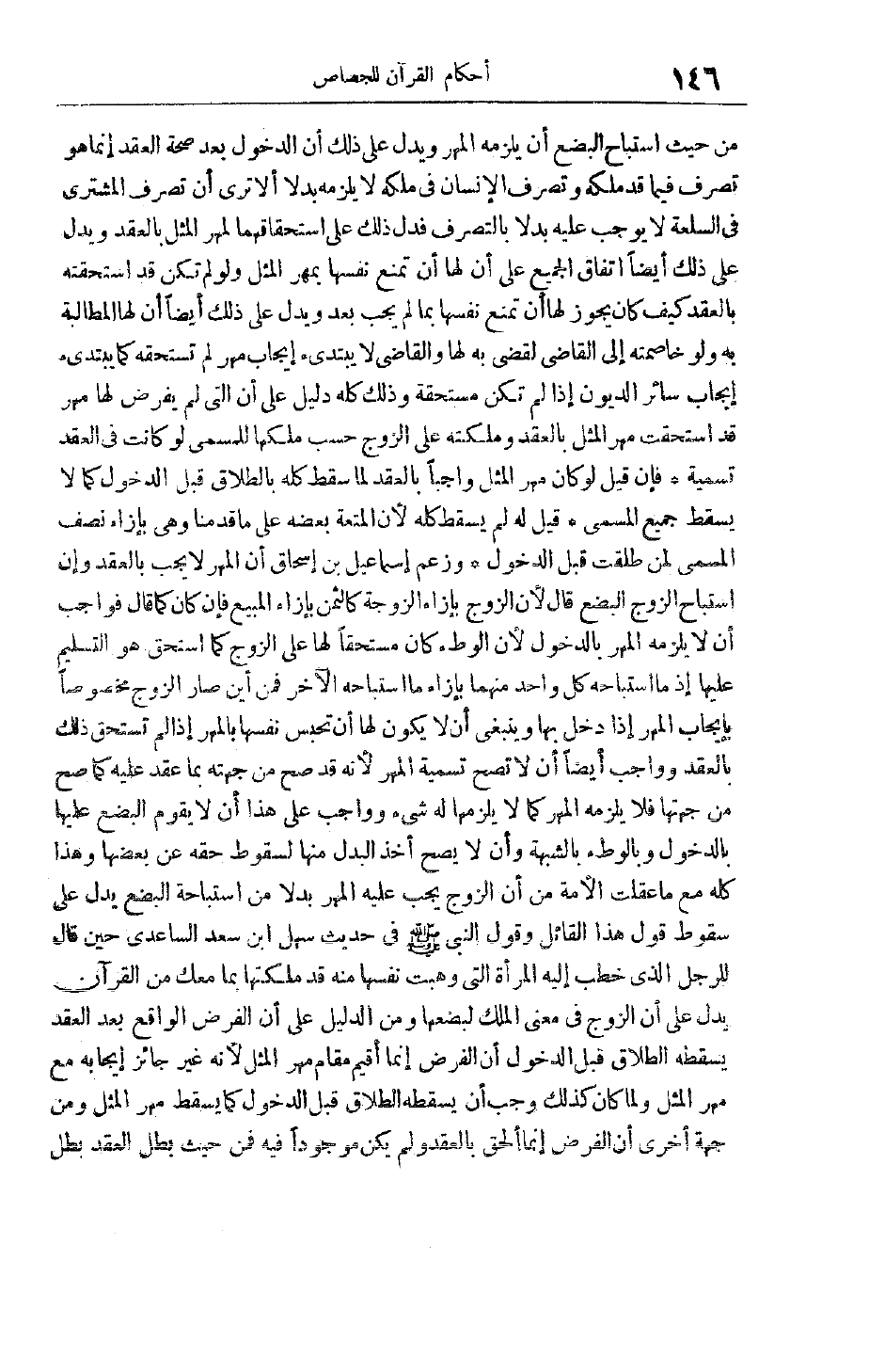 بْنُ إِسْحَاقَ أَنَّ المهر لَا يَجِبُ بِالْعَقْدِ وَإِنْ اسْتَبَاحَ الزَّوْجُ الْبُضْعَ قَالَ لِأَنَّ الزَّوْجَ بِإِزَاءِ الزَّوْجَةِ كَالثَّمَنِ بِإِزَاءِ الْمَبِيعِ فَإِنْ كَانَ كَمَا قَالَ فَوَاجِبٌ أَنْ لَا يَلْزَمَهُ الْمَهْرُ بِالدُّخُولِ لِأَنَّ الْوَطْءَ كَانَ مُسْتَحَقًّا لَهَا عَلَى الزَّوْجِ كَمَا اسْتَحَقَّ هُوَ التَّسْلِيمَ عَلَيْهَا إذْ مَا اسْتَبَاحَهُ كُلُّ وَاحِدٍ مِنْهُمَا بِإِزَاءِ مَا اسْتَبَاحَهُ الْآخَرُ فَمِنْ أَيْنَ صَارَ الزَّوْجُ مَخْصُوصًا بِإِيجَابِ الْمَهْرِ إذَا دَخَلَ بِهَا وَيَنْبَغِي أَنْ لَا يَكُونَ لَهَا أَنْ تَحْبِسَ نَفْسَهَا بِالْمَهْرِ إذَا لَمْ تَسْتَحِقَّ ذَلِكَ بِالْعَقْدِ وَوَاجِبٌ أَيْضًا أَنْ لَا تَصِحَّ تَسْمِيَةُ الْمَهْرِ لِأَنَّهُ قَدْ صَحَّ مِنْ جِهَتِهِ بِمَا عَقَدَ عَلَيْهِ كَمَا صَحَّ مِنْ جِهَتِهَا فَلَا يَلْزَمُهُ الْمَهْرُ كَمَا لَا يَلْزَمُهَا لَهُ شَيْءٌ وَوَاجِبٌ عَلَى هَذَا أَنْ لَا يُقَوَّمَ الْبُضْعُ عَلَيْهَا بِالدُّخُولِ وَبِالْوَطْءِ بِالشُّبْهَةِ وَأَنْ لَا يَصِحَّ أخذ البدل منها لسقوط حقه عن بعضها وَهَذَا كُلُّهُ مَعَ مَا عَقَلَتْ الْأُمَّةُ مِنْ أَنَّ الزَّوْجَ يَجِبُ عَلَيْهِ الْمَهْرُ بَدَلًا مِنْ اسْتِبَاحَةِ الْبُضْعِ يَدُلُّ عَلَى سُقُوطِ قَوْلِ هَذَا الْقَائِلِ