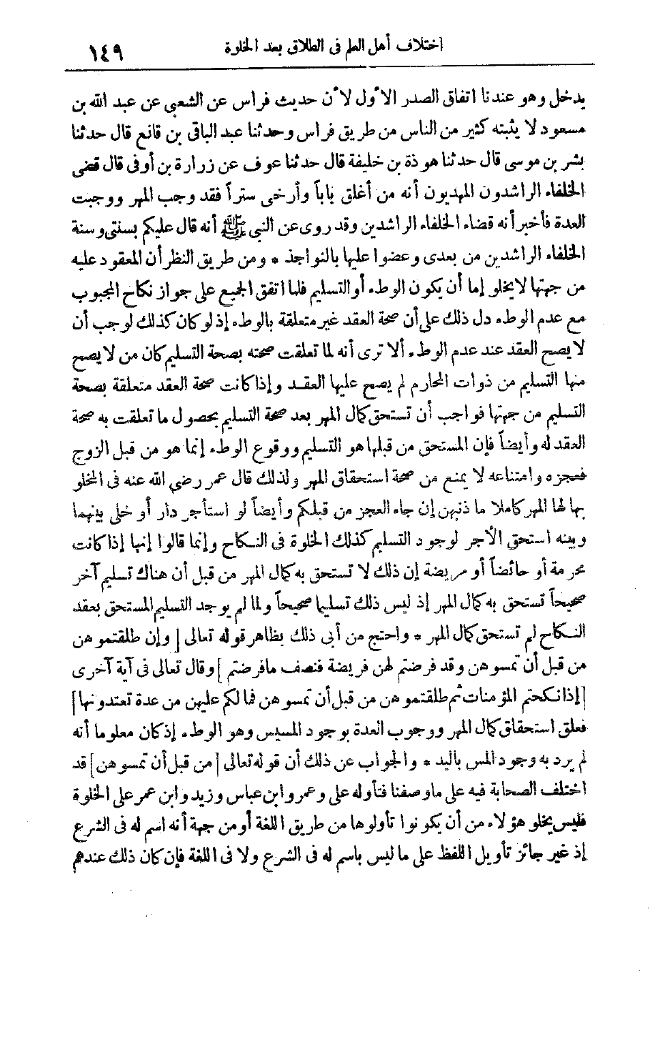 وَهُوَ عِنْدَنَا اتِّفَاقُ الصَّدْرِ الْأَوَّلِ لِأَنَّ حَدِيثَ فِرَاسٍ عَنْ الشَّعْبِيِّ عَنْ عَبْدِ اللَّهِ بْنِ مَسْعُودٍ لَا يُثْبِتُهُ كَثِيرٌ مِنْ النَّاسِ مِنْ طَرِيقِ فِرَاسٍ وَحَدَّثَنَا عَبْدُ الْبَاقِي بْنُ قَانِعٍ قَالَ حَدَّثَنَا بِشْرُ بْنُ مُوسَى قَالَ حَدَّثَنَا هَوْذَةُ بْنُ خَلِيفَةَ قَالَ حَدَّثَنَا عَوْفٌ عَنْ زُرَارَةَ بْنِ أَوْفَى قَالَ قَضَى الْخُلَفَاءُ الراشدون المهديون أنه من أغلق بابا وأرخى سِتْرًا فَقَدْ وَجَبَ الْمَهْرُ وَوَجَبَتْ الْعِدَّةُ فَأَخْبَرَ أَنَّهُ قَضَاءُ الْخُلَفَاءِ الرَّاشِدِينَ