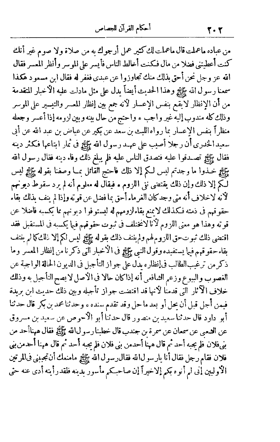 كَمَا لَمْ يَنْتِفْ بَقَاءُ حُقُوقِهِمْ فِيمَا يَسْتَفِيدُهُ وَقَوْلُ النَّبِيِّ صَلَّى اللَّهُ عَلَيْهِ وَسَلَّمَ فِي الْأَخْبَارِ الَّتِي ذَكَرْنَا مِنْ إنْظَارِ الْمُعْسِرِ وَمَا ذُكِرَ مِنْ تَرْغِيبِ الطَّالِبِ فِي إنْظَارِهِ يدل على جواز التَّأْجِيلَ فِي الدُّيُونِ الْحَالَّةِ الْوَاجِبَةِ عَنْ الْغُصُوبِ وَالْبُيُوعِ وَزَعَمَ الشَّافِعِيُّ أَنَّهُ إذَا كَانَ حَالًّا فِي الْأَصْلِ لَا يَصِحُّ التَّأْجِيلُ بِهِ وَذَلِكَ خِلَافُ الْآثَارِ الَّتِي قَدَّمْنَا لِأَنَّهَا قَدْ اقْتَضَتْ جَوَازَ تَأْجِيلِهِ وَبَيَّنَ ذَلِكَ حَدِيثُ ابْنِ بُرَيْدَةَ فيمن أجل قبل أن يحل أو بعد ما حَلَّ وَقَدْ تَقَدَّمَ سَنَدُهُ