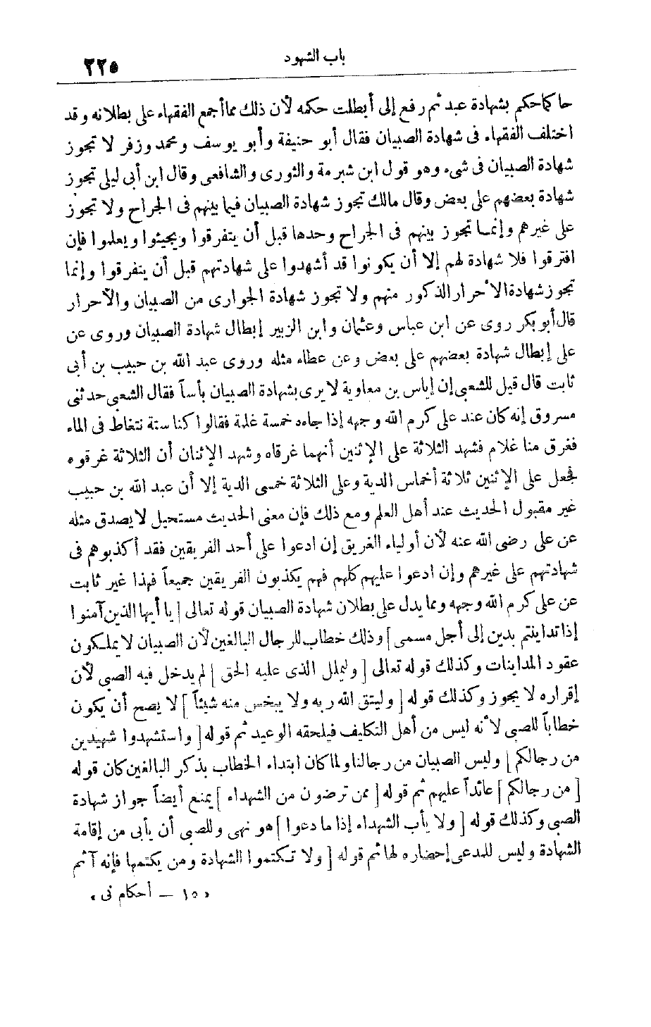 حَاكِمًا حَكَمَ بِشَهَادَةِ عَبْدٍ ثُمَّ رَفَعَ إلَيَّ أَبْطَلْت حُكْمَهُ لِأَنَّ ذَلِكَ مِمَّا أَجْمَعَ الْفُقَهَاءُ عَلَى بُطْلَانِهِ وَقَدْ اخْتَلَفَ الْفُقَهَاءُ فِي شَهَادَةِ الصِّبْيَانِ فَقَالَ أَبُو حَنِيفَةَ وَأَبُو يُوسُفَ وَمُحَمَّدٌ وَزُفَرُ لَا تَجُوزُ شَهَادَةُ الصِّبْيَانِ فِي شَيْءٍ وَهُوَ قَوْلُ ابْنِ شُبْرُمَةَ وَالثَّوْرِيِّ وَالشَّافِعِيِّ وَقَالَ ابْنُ أَبِي لَيْلَى تَجُوزُ شَهَادَةُ بَعْضِهِمْ عَلَى بَعْضٍ وَقَالَ مَالِكٌ تَجُوزُ شَهَادَةُ الصِّبْيَانِ فِيمَا بَيْنَهُمْ فِي الْجِرَاحِ وَلَا تَجُوزُ عَلَى غَيْرِهِمْ وَإِنَّمَا تَجُوزُ بَيْنَهُمْ فِي الْجِرَاحِ وَحْدَهَا قَبْلَ أَنْ يَتَفَرَّقُوا وَيَجِيئُوا وَيَعْلَمُوا فَإِنْ افْتَرَقُوا فَلَا شَهَادَةَ لَهُمْ إلَّا أَنْ يَكُونُوا قَدْ أَشْهَدُوا عَلَى شَهَادَتِهِمْ قَبْلَ أَنْ يَتَفَرَّقُوا وَإِنَّمَا تَجُوزُ شَهَادَةُ الْأَحْرَارِ الذُّكُورِ مِنْهُمْ وَلَا تَجُوزُ شَهَادَةُ الْجَوَارِي مِنْ الصِّبْيَانِ وَالْأَحْرَارِ قَالَ أَبُو بَكْرٍ رُوِيَ عَنْ ابْنِ عَبَّاسٍ وَعُثْمَانَ وَابْنِ الزُّبَيْرِ إبْطَالُ شَهَادَةِ الصِّبْيَانِ وَرُوِيَ عَنْ عَلِيٍّ إبْطَالُ شَهَادَةِ بَعْضِهِمْ عَلَى بَعْضٍ وَعَنْ عَطَاءٍ مِثْلُهُ وروى عبد الله بن حبيب بْنُ أَبِي ثَابِتٍ قَالَ قِيلَ لِلشَّعْبِيِّ إنَّ إيَاسَ بْنَ مُعَاوِيَةَ لَا يَرَى بِشَهَادَةِ الصِّبْيَانِ بَأْسًا
