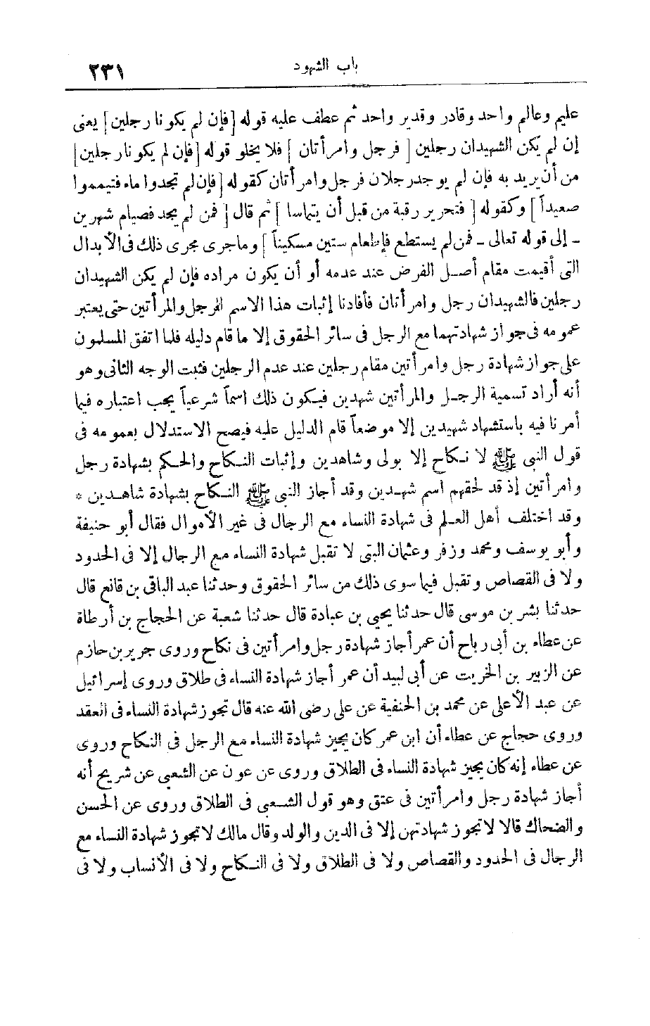 وَإِثْبَاتُ النِّكَاحِ وَالْحُكْمُ بِشَهَادَةِ رجل وامرأتين إذ قد لحقهم اسم شهدين وَقَدْ أَجَازَ النَّبِيُّ صَلَّى اللَّهُ عَلَيْهِ وَسَلَّمَ النِّكَاحَ بِشَهَادَةِ شَاهِدَيْنِ وَقَدْ اخْتَلَفَ أَهْلُ الْعِلْمِ فِي شَهَادَةِ النِّسَاءِ مَعَ الرِّجَالِ فِي غَيْرِ الْأَمْوَالِ فَقَالَ أَبُو حَنِيفَةَ وَأَبُو يُوسُفَ وَمُحَمَّدٌ وَزُفَرُ وَعُثْمَانُ الْبَتِّيُّ لَا تُقْبَلُ شَهَادَةُ النِّسَاءِ مع الرجال إلا فِي الْحُدُودِ وَلَا فِي الْقِصَاصِ وَتُقْبَلُ فِيمَا سِوَى ذَلِكَ مِنْ سَائِرِ الْحُقُوقِ وَحَدَّثَنَا عَبْدُ الباقي بن قانع قال حدثنا بشر بن موسى قال حدثنا يحيى بن عبادة قَالَ حَدَّثَنَا شُعْبَةُ عَنْ الْحَجَّاجِ بْنِ أَرْطَاةَ عَنْ عَطَاءِ بْنِ أَبِي رَبَاحٍ أَنَّ عُمَرَ أَجَازَ شَهَادَةَ رَجُلٍ وَامْرَأَتَيْنِ فِي نِكَاحٍ وَرَوَى جَرِيرُ بْنُ حَازِمٍ عَنْ الزُّبَيْرِ بْنِ الْخِرِّيتِ عَنْ أَبِي لَبِيدٍ أَنَّ عُمَرَ أَجَازَ شَهَادَةَ النِّسَاءِ فِي طَلَاقٍ