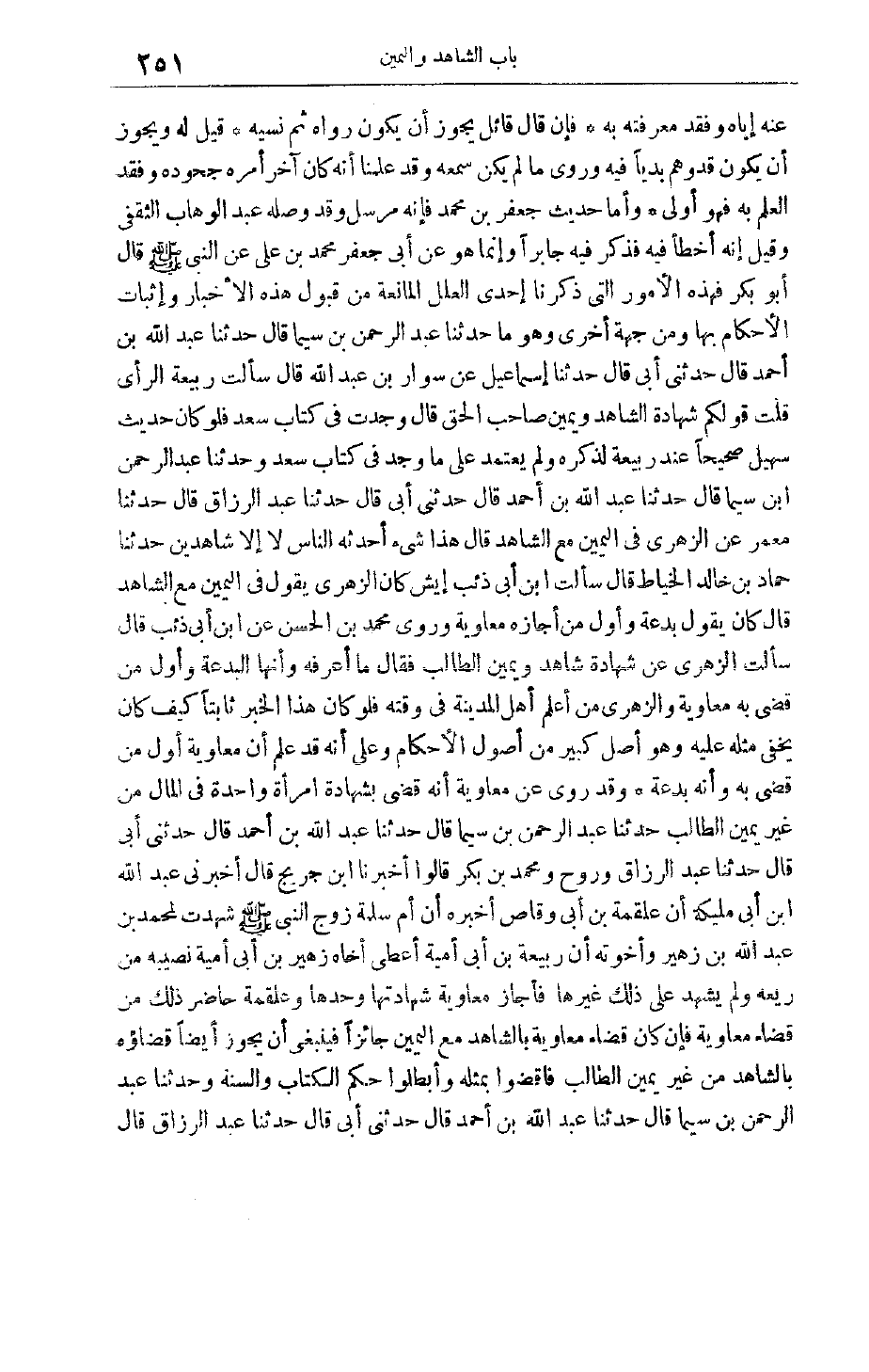 عَنْهُ إيَّاهُ وَفَقْدِ مَعْرِفَتِهِ بِهِ فَإِنْ قَالَ قَائِلٌ يَجُوزُ أَنْ يَكُونَ رَوَاهُ ثُمَّ نَسِيَهُ قِيلَ لَهُ وَيَجُوزُ أَنْ يَكُونَ قَدْ وَهَمَ بَدِيًّا فِيهِ وَرَوَى مَا لَمْ يَكُنْ سَمِعَهُ وَقَدْ عَلِمْنَا أَنَّهُ كَانَ آخِرُ أَمْرِهِ جُحُودَهُ وَفَقْدَ الْعِلْمِ بِهِ فَهُوَ أَوْلَى وَأَمَّا حَدِيثُ جَعْفَرِ بْنِ مُحَمَّدٍ فَإِنَّهُ مُرْسَلٌ وَقَدْ وَصَلَهُ عَبْدُ الْوَهَّابِ الثَّقَفِيُّ وَقِيلَ إنَّهُ أَخْطَأَ فِيهِ فَذَكَرَ فِيهِ جَابِرًا وَإِنَّمَا هُوَ عَنْ أَبِي جَعْفَرٍ مُحَمَّدِ بْنِ عَلِيٍّ عَنْ النَّبِيِّ صَلَّى اللَّهُ عَلَيْهِ وَسَلَّمَ قَالَ أَبُو بَكْرٍ فَهَذِهِ الْأُمُورُ الَّتِي ذَكَرْنَا إحْدَى الْعِلَلِ الْمَانِعَةِ مِنْ قَبُولِ هَذِهِ الْأَخْبَارِ وَإِثْبَاتِ الْأَحْكَامِ بِهَا وَمِنْ جِهَةٍ أُخْرَى وَهُوَ مَا حَدَّثَنَا عَبْدُ الرَّحْمَنُ بن سيما قال حدثنا عبد الله بن أَحْمَدَ قَالَ حَدَّثَنِي أَبِي قَالَ حَدَّثَنَا إسْمَاعِيلُ عَنْ سِوَارِ بْنِ عَبْدِ اللَّهِ قَالَ سَأَلْت رَبِيعَةَ الرَّأْيَ قُلْت قَوْلُكُمْ شَهَادَةَ الشَّاهِدِ وَيَمِينَ صَاحِبِ الْحَقِّ قَالَ وَجَدْت فِي كِتَابِ سَعْدٍ فَلَوْ كَانَ حَدِيثُ سُهَيْلٍ صَحِيحًا عِنْدَ رَبِيعَةَ لَذَكَرَهُ وَلَمْ يَعْتَمِدْ عَلَى مَا وَجَدَ فِي كتاب سعد وحدثنا عبد الرحمن ابن سيما قال حدثنا عبد الله بن أحمد قَالَ حَدَّثَنِي أَبِي قَالَ حَدَّثَنَا عَبْدُ الرَّزَّاقِ قَالَ حَدَّثَنَا مَعْمَرٌ عَنْ الزُّهْرِيِّ فِي الْيَمِينِ مَعَ الشَّاهِدِ قَالَ هَذَا شَيْءٌ أَحْدَثَهُ النَّاسُ لَا إلَّا شَاهِدَيْنِ حَدَّثَنَا حَمَّادُ بْنُ خَالِدٍ الْخَيَّاطُ قَالَ سَأَلْت ابْنَ أَبِي ذِئْبٍ إيشْ كَانَ الزُّهْرِيُّ يَقُولُ فِي الْيَمِينِ مَعَ الشَّاهِدِ قَالَ كَانَ يَقُولُ بِدْعَةً وَأَوَّلُ مَنْ أَجَازَهُ مُعَاوِيَةُ وَرَوَى مُحَمَّدُ بْنُ الْحَسَنِ عَنْ ابْنِ أَبِي ذِئْبٍ قَالَ سَأَلْت الزُّهْرِيَّ عَنْ شَهَادَةِ شَاهِدٍ وَيَمِينِ الطَّالِبِ فَقَالَ مَا أَعْرِفُهُ وَإِنَّهَا البدعة وَأَوَّلُ مَنْ قَضَى بِهِ مُعَاوِيَةُ وَالزُّهْرِيُّ مِنْ أَعْلَمِ أَهْلِ الْمَدِينَةِ فِي وَقْتِهِ فَلَوْ كَانَ هَذَا الْخَبَرُ ثَابِتًا كَيْفَ كَانَ يَخْفَى مِثْلُهُ عَلَيْهِ وَهُوَ أَصْلٌ كَبِيرٌ مِنْ أُصُولِ الْأَحْكَامِ وَعَلَى أَنَّهُ قَدْ عَلِمَ أَنَّ مُعَاوِيَةَ أَوَّلُ مَنْ قَضَى بِهِ وَأَنَّهُ بِدْعَةٌ وَقَدْ رُوِيَ عَنْ مُعَاوِيَةَ أَنَّهُ قَضَى بِشَهَادَةِ امْرَأَةٍ وَاحِدَةٍ فِي الْمَالِ مِنْ غَيْرِ يَمِينِ الطَّالِبِ حَدَّثَنَا عبد الرحمن بن سيما قال حدثنا عبد اللَّهِ بْنُ أَحْمَدَ قَالَ حَدَّثَنِي أَبِي قَالَ حَدَّثَنَا عَبْدُ الرَّزَّاقِ وَرَوْحٌ وَمُحَمَّدُ بْنُ بَكْرٍ قَالُوا أَخْبَرَنَا ابْنُ جُرَيْجٍ قَالَ أَخْبَرَنِي عَبْدُ الله ابن أَبِي مُلَيْكَةَ أَنَّ عَلْقَمَةَ بْنَ أَبِي وَقَّاصٍ أَخْبَرَهُ أَنَّ أُمَّ سَلَمَةَ زَوْجَ النَّبِيِّ صَلَّى اللَّهُ عَلَيْهِ وَسَلَّمَ شَهِدَتْ لِمُحَمَّدِ بْنِ عَبْدِ اللَّهِ بْنِ زُهَيْرٍ وَإِخْوَتِهِ أَنَّ رَبِيعَةَ بْنَ أَبِي أُمَيَّةَ أَعْطَى أَخَاهُ زُهَيْرَ بْنَ أَبِي أمية نصيبه من ريعه وَلَمْ يَشْهَدْ عَلَى ذَلِكَ غَيْرُهَا فَأَجَازَ مُعَاوِيَةُ شَهَادَتَهَا وَحْدَهَا وَعَلْقَمَةُ حَاضِرٌ ذَلِكَ مِنْ قَضَاءِ مُعَاوِيَةَ فَإِنْ كَانَ قَضَاءُ مُعَاوِيَةَ بِالشَّاهِدِ مَعَ الْيَمِينِ جَائِزًا فَيَنْبَغِي أَنْ يَجُوزَ أَيْضًا قَضَاؤُهُ بِالشَّاهِدِ مِنْ غَيْرِ يَمِينِ الطَّالِبِ فَاقْضُوا بِمِثْلِهِ وَأَبْطِلُوا حُكْمَ الْكِتَابِ وَالسُّنَّةِ وَحَدَّثَنَا عَبْدُ الرَّحْمَنِ بن سيما قال حدثنا عبد الله بن أَحْمَدَ قَالَ حَدَّثَنِي أَبِي قَالَ حَدَّثَن