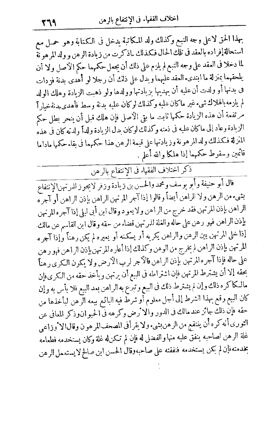 قَالَ أَبُو حَنِيفَةَ وَأَبُو يُوسُفَ وَمُحَمَّدٌ وَالْحَسَنُ بْنُ زيادة وَزُفَرُ لَا يَجُوزُ لِلْمُرْتَهِنِ الِانْتِفَاعُ بِشَيْءٍ مِنْ الرهن ولا الراهن أيضا وقالوا إذا آجر المرتهن الراهن بِإِذْنِ الرَّاهِنِ أَوْ آجَرَهُ الرَّاهِنُ بِإِذْنِ الْمُرْتَهِنِ فقد خرج من الراهن وَلَا يَعُودُ وَقَالَ ابْنُ أَبِي لَيْلَى إذَا آجَرَهُ الْمُرْتَهِنُ بِإِذْنِ الرَّاهِنِ فَهُوَ رَهْنٌ عَلَى حاله وَالْغَلَّةُ لِلْمُرْتَهِنِ قَضَاءً مِنْ حَقِّهِ وَقَالَ ابْنُ الْقَاسِمِ عَنْ مَالِكٍ إذَا خَلَّى الْمُرْتَهِنُ بَيْنَ الرَّهْنِ وَالرَّاهِنِ يُكْرِيهِ أَوْ يُسَكِّنُهُ أَوْ يُعِيرُهُ لَمْ يَكُنْ رَهْنًا وَإِذَا آجَرَهُ الْمُرْتَهِنُ بِإِذْنِ الرَّاهِنِ لَمْ يَخْرُجْ مِنْ الرَّهْنِ وَكَذَلِكَ إذَا أَعَارَهُ الْمُرْتَهِنُ بِإِذْنِ الرَّاهِنِ فَهُوَ رَهْنٌ عَلَى حَالِهِ فَإِذَا آجَرَهُ الْمُرْتَهِنُ بِإِذْنِ الرَّاهِنِ فَالْأَجْرُ لِرَبِّ الْأَرْضِ وَلَا يَكُونُ الْكَرْيُ رَهْنًا بِحَقِّهِ إلا أن يشترط المرتهن فإن اشتراطه فِي الْبَيْعِ أَنْ يَرْتَهِنَ وَيَأْخُذَ حَقَّهُ مِنْ الْكَرْيِ فَإِنَّ مَالِكًا كَرِهَ ذَلِكَ وَإِنْ لَمْ يَشْتَرِطْ ذَلِكَ فِي الْبَيْعِ وَتَبَرَّعَ بِهِ الرَّاهِنُ بَعْدَ الْبَيْعِ فَلَا بَأْسَ بِهِ وَإِنْ كَانَ الْبَيْعُ وَقَعَ بِهَذَا الشَّرْطِ إلَى أَجَلٍ مَعْلُومٍ أَوْ شَرَطَ فِيهِ الْبَائِعُ بَيْعَهُ الرَّهْنَ لِيَأْخُذَهَا مِنْ حَقِّهِ فَإِنَّ ذَلِكَ جَائِزٌ عِنْدَ مَالِكٍ فِي الدُّورِ وَالْأَرْضِ وَكَرِهَهُ فِي الْحَيَوَانِ وَذَكَرَ المعاني عَنْ الثَّوْرِيِّ أَنَّهُ كَرِهَ أَنْ يُنْتَفَعَ مِنْ الرَّهْنِ بِشَيْءٍ وَلَا يُقْرَأَ فِي الْمُصْحَفِ الْمَرْهُونِ وَقَالَ الْأَوْزَاعِيُّ غَلَّةُ الرَّهْنِ لِصَاحِبِهِ يُنْفِقُ عَلَيْهِ منها والفضل له فإن لم تكن له غَلَّةً وَكَانَ يَسْتَخْدِمُهُ فَطَعَامُهُ بِخِدْمَتِهِ فَإِنْ لَمْ يَكُنْ يَسْتَخْدِمُهُ فَنَفَقَتُهُ عَلَى صَاحِبِهِ وَقَالَ الْحَسَنُ ابن صَالِحٍ لَا يَسْتَعْمِلُ الرَّهْنَ