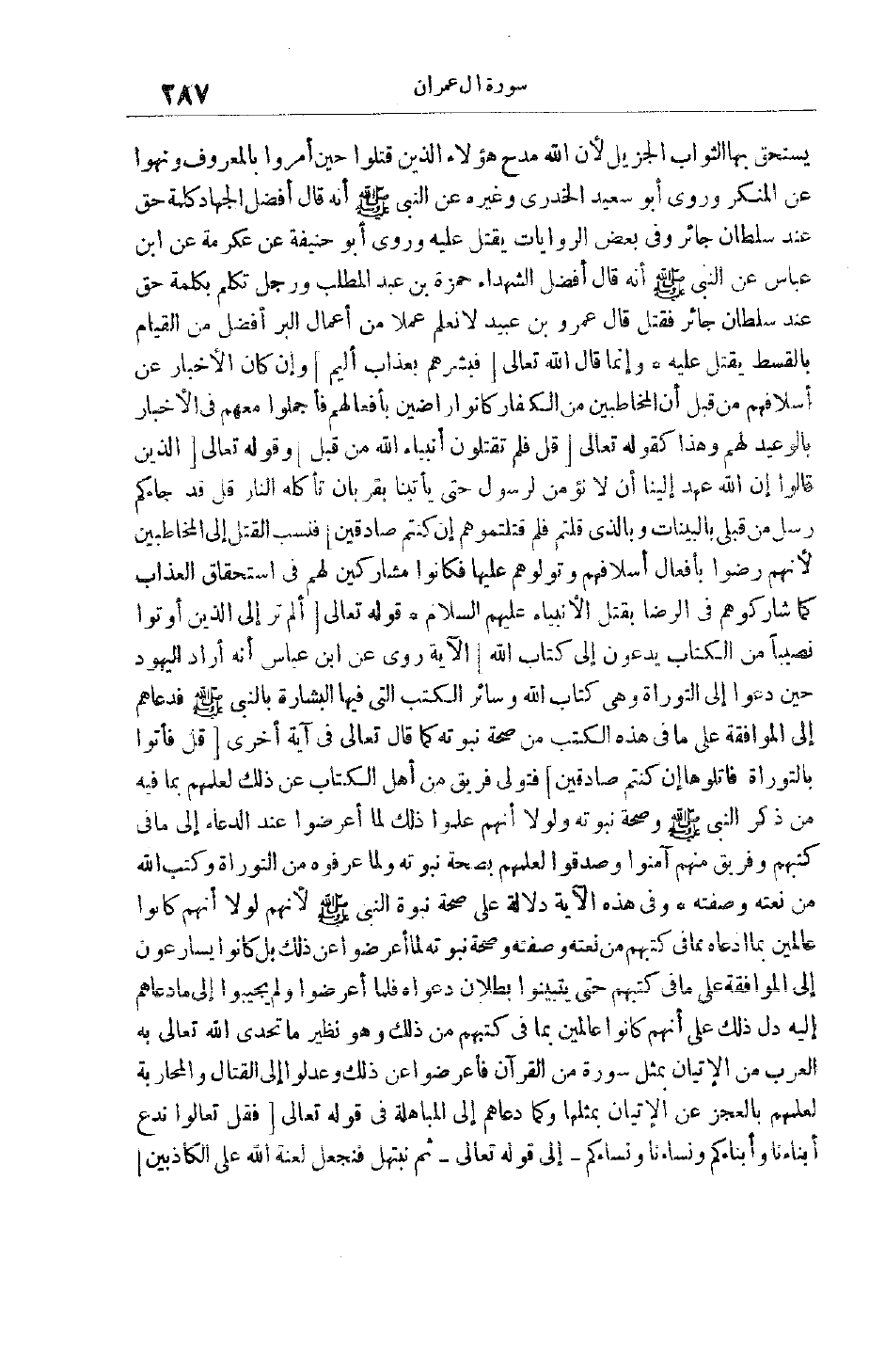 قَوْله تَعَالَى أَلَمْ تَرَ إِلَى الَّذِينَ أُوتُوا نَصِيباً مِنَ الْكِتابِ يُدْعَوْنَ إِلى كِتابِ اللَّهِ الْآيَةَ رُوِيَ عَنْ ابْنِ عَبَّاسٍ أَنَّهُ أَرَادَ الْيَهُودَ حِينَ دُعُوا إلَى التَّوْرَاةِ وَهِيَ كِتَابُ اللَّهِ وَسَائِرِ الْكُتُبِ الَّتِي فِيهَا الْبِشَارَةُ بِالنَّبِيِّ صَلَّى اللَّهُ عَلَيْهِ وَسَلَّمَ فَدَعَاهُمْ إلَى الْمُوَافَقَةِ عَلَى مَا فِي هَذِهِ الْكُتُبِ مِنْ صِحَّةِ نُبُوَّتِهِ كَمَا قَالَ تَعَالَى فِي آيَةٍ أُخْرَى قُلْ فَأْتُوا بِالتَّوْراةِ فَاتْلُوها إِنْ كُنْتُمْ صادِقِينَ فَتَوَلَّى فَرِيقٌ مِنْ أَهْلِ الْكِتَابِ عَنْ ذَلِكَ لِعِلْمِهِمْ بِمَا فِيهِ مِنْ ذِكْرِ النَّبِيِّ صَلَّى اللَّهُ عَلَيْهِ وَسَلَّمَ وَصِحَّةِ نُبُوَّتِهِ وَلَوْلَا أَنَّهُمْ عَلِمُوا ذَلِكَ لَمَا أَعْرَضُوا عِنْدَ الدُّعَاءِ إلَى مَا فِي كُتُبِهِمْ وَفَرِيقٌ مِنْهُمْ آمَنُوا وَصَدَّقُوا لِعِلْمِهِمْ بِصِحَّةِ نُبُوَّتِهِ وَلِمَا عَرَفُوهُ مِنْ التَّوْرَاةِ وَكُتُبِ اللَّهِ مِنْ نَعْتِهِ وَصِفَتِهِ وَفِي هَذِهِ الْآيَةِ دَلَالَةٌ عَلَى صِحَّةِ نُبُوَّةِ النَّبِيِّ صَلَّى اللَّهُ عَلَيْهِ وَسَلَّمَ لِأَنَّهُمْ لَوْلَا أَنَّهُمْ كَانُوا عَالِمِينَ بِمَا ادَّعَاهُ مِمَّا فِي كُتُبِهِمْ مِنْ نَعْتِهِ وَصِفَتِهِ وَصِحَّةِ نُبُوَّتِهِ لَمَا أَعْرَضُوا عَنْ ذَلِكَ بَلْ كَانُوا يُسَارِعُونَ إلَى الْمُوَافَقَةِ عَلَى مَا فِي كُتُبِهِمْ حَتَّى يَتَبَيَّنُوا بُطْلَانَ دَعْوَاهُ فَلَمَّا أَعْرَضُوا وَلَمْ يُجِيبُوا إلَى مَا دَعَاهُمْ إلَيْهِ دَلَّ ذَلِكَ عَلَى أَنَّهُمْ كَانُوا عَالِمِينَ بِمَا فِي كُتُبِهِمْ مِنْ ذَلِكَ وَهُوَ نَظِيرُ مَا تَحَدَّى اللَّهُ تَعَالَى بِهِ الْعَرَبَ مِنْ الْإِتْيَانِ بِمِثْلِ سُورَةٍ مِنْ الْقُرْآنِ فَأَعْرَضُوا عَنْ ذَلِكَ وَعَدَلُوا إلَى الْقِتَالِ وَالْمُحَارَبَةِ لِعِلْمِهِمْ بِالْعَجْزِ عَنْ الْإِتْيَانِ بِمِثْلِهَا وَكَمَا دَعَاهُمْ إلَى الْمُبَاهَلَةِ فِي قَوْله تَعَالَى فَقُلْ تَعالَوْا نَدْعُ أَبْناءَنا وَأَبْناءَكُمْ وَنِساءَنا وَنِساءَكُمْ- إلَى قَوْله تَعَالَى- ثُمَّ نَبْتَهِلْ فَنَجْعَلْ لَعْنَتَ اللَّهِ عَلَى الْكاذِبِينَ