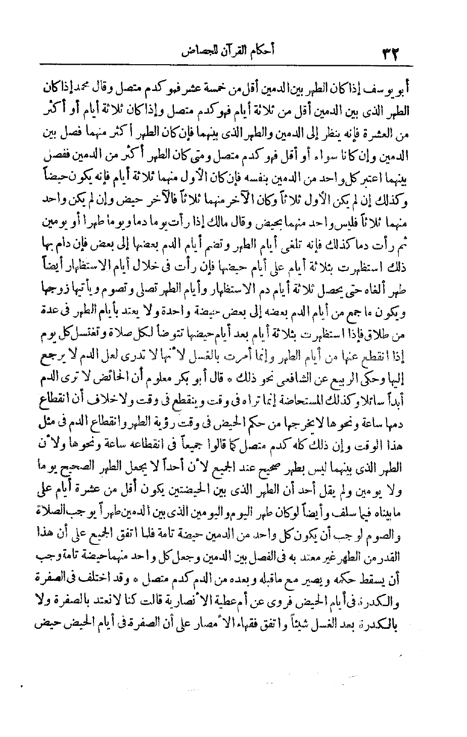 أَبُو يُوسُفَ إذَا كَانَ الطُّهْرُ بَيْنَ الدَّمَيْنِ أَقَلَّ مِنْ خَمْسَةَ عَشَرَ فَهُوَ كَدَمٍ مُتَّصِلٍ وَقَالَ مُحَمَّدٌ إذَا كَانَ الطُّهْرُ الَّذِي بَيْنَ الدَّمَيْنِ أَقَلَّ مِنْ ثَلَاثَةِ أَيَّامٍ فَهُوَ كَدَمٍ مُتَّصِلٍ وَإِذَا كَانَ ثَلَاثَةَ أَيَّامٍ أَوْ أَكْثَرَ مِنْ الْعَشَرَةِ فَإِنَّهُ يُنْظَرُ إلَى الدَّمَيْنِ وَالطُّهْرِ الَّذِي بَيْنَهُمَا فَإِنْ كَانَ الطُّهْرُ أَكْثَرَ مِنْهُمَا فُصِلَ بَيْنَ الدَّمَيْنِ وَإِنْ كَانَا سَوَاءً أَوْ أَقَلَّ فَهُوَ كَدَمٍ مُتَّصِلٍ وَمَتَى كَانَ الطُّهْرُ أَكْثَرَ مِنْ الدَّمَيْنِ فَفُصِلَ بَيْنَهُمَا اُعْتُبِرَ كُلُّ وَاحِدٍ مِنْ الدَّمَيْنِ بِنَفْسِهِ فَإِنْ كَانَ الْأَوَّلُ مِنْهُمَا ثَلَاثَةَ أَيَّامٍ فَإِنَّهُ يَكُونُ حَيْضًا وَكَذَلِكَ إنْ لَمْ يَكُنْ الْأَوَّلُ ثَلَاثًا وَكَانَ الْآخَرُ مِنْهُمَا ثَلَاثًا فَالْآخَرُ حَيْضٌ وَإِنْ لَمْ يَكُنْ وَاحِدٌ مِنْهُمَا ثَلَاثًا فَلَيْسَ وَاحِدٌ مِنْهُمَا بِحَيْضٍ وَقَالَ مَالِكٌ إذَا رَأَتْ يَوْمًا دَمًا وَيَوْمًا طُهْرًا أَوْ يَوْمَيْنِ ثُمَّ رَأَتْ دَمًا كَذَلِكَ فَإِنَّهُ تُلْغَى أَيَّامُ الطُّهْرِ وَتُضَمُّ أَيَّامُ الدَّمِ بَعْضُهَا إلَى بَعْضٍ فَإِنْ دَامَ بِهَا ذَلِكَ اسْتَظْهَرَتْ بِثَلَاثَةِ أَيَّامٍ عَلَى أَيَّامِ حَيْضِهَا فَإِنْ رأت في خلال أيام الاستظهار أيضا طهر أَلْغَاهُ حَتَّى يَحْصُلَ ثَلَاثَةَ أَيَّامٍ دَمُ الِاسْتِظْهَارِ وَأَيَّامَ الطُّهْرِ تُصَلِّي وَتَصُومُ وَيَأْتِيهَا زَوْجُهَا وَيَكُونُ مَا جُمِعَ مِنْ أَيَّامِ الدَّمِ بَعْضُهُ إلَى بَعْضٍ حَيْضَةً وَاحِدَةً وَلَا يُعْتَدُّ بِأَيَّامِ الطُّهْرِ فِي عِدَّةٍ مِنْ طَلَاقٍ فَإِذَا اسْتَظْهَرَتْ بِثَلَاثَةِ أَيَّامٍ بَعْدَ أَيَّامِ حَيْضِهَا تَتَوَضَّأُ لِكُلِّ صَلَاةٍ وَتَغْتَسِلُ كُلَّ يَوْمٍ إذَا انْقَطَعَ عَنْهَا مِنْ أَيَّامِ الطُّهْرِ وَإِنَّمَا أُمِرَتْ بِالْغُسْلِ لِأَنَّهَا لَا تَدْرِي لَعَلَّ الدَّمَ لَا يَرْجِعُ إلَيْهَا وَحَكَى الرَّبِيعُ عَنْ الشَّافِعِيِّ نَحْوَ ذَلِكَ قَالَ أَبُو بَكْرٍ مَعْلُومٌ أَنَّ الْحَائِضَ لَا تَرَى الدَّمَ أَبَدًا سَائِلًا وَكَذَلِكَ الْمُسْتَحَاضَةُ إنَّمَا تَرَاهُ فِي وَقْتٍ وَيَنْقَطِعُ فِي وَقْتٍ وَلَا خِلَافَ أَنَّ انْقِطَاعَ دَمِهَا سَاعَةً وَنَحْوَهَا لَا يُخْرِجُهَا مِنْ حُكْمِ الْحَيْضِ فِي وَقْتِ رُؤْيَةِ الطُّهْرِ وَانْقِطَاعِ الدَّمِ فِي مِثْلِ هَذَا الْوَقْتِ وَأَنَّ ذَلِكَ كُلَّهُ كَدَمٍ مُتَّصِلٍ كَمَا قَالُوا جَمِيعًا فِي انْقِطَاعِهِ سَاعَةً وَنَحْوَهَا وَلِأَنَّ الطُّهْرَ الَّذِي بَيْنَهُمَا لَيْسَ بِطُهْرٍ صَحِيحٍ عِنْدَ الْجَمِيعِ لِأَنَّ أَحَدًا لَا يَجْعَلُ الطُّهْرَ الصَّحِيحَ يَوْمًا وَلَا يَوْمَيْنِ وَلَمْ يَقُلْ أَحَدٌ إنَّ الطُّهْرَ الَّذِي بَيْنَ الْحَيْضَتَيْنِ يَكُونُ أَقَلَّ مِنْ عَشَرَةِ أَيَّامٍ عَلَى مَا بَيَّنَّاهُ فِيمَا سَلَفَ وَأَيْضًا لَوْ كَانَ طُهْرُ الْيَوْمِ وَالْيَوْمَيْنِ الَّذِي بَيْنَ الدَّمَيْنِ طُهْرًا يُوجِبُ الصَّلَاةَ وَالصَّوْمَ لَوَجَبَ أَنْ يَكُونَ كُلُّ وَاحِدٍ مِنْ الدَّمَيْنِ حَيْضَةً تَامَّةً فَلَمَّا اتَّفَقَ الْجَمِيعُ عَلَى أَنَّ هَذَا الْقَدْرَ مِنْ الطُّهْرِ غَيْرُ مُعْتَدٍّ بِهِ فِي الْفَصْلِ بَيْنَ الدَّمَيْنِ وَجُعِلَ كُلُّ وَاحِدٍ مِنْهُمَا حَيْضَةً تَامَّةً وَجَبَ أَنْ يَسْقُطَ حُكْمُهُ وَيَصِيرَ مَعَ مَا قَبْلَهُ وَبَعْدَهُ مِنْ الدَّمِ كَدَمٍ مُتَّصِلٍ وَقَدْ اُخْتُلِفَ فِي الصُّفْرَةِ وَالْكُدْرَةِ فِي أَيَّامِ الْحَيْضِ فَرُوِيَ عَنْ أُمِّ عَطِيَّةَ الْأَنْصَارِيَّةِ قَالَتْ كُنَّا لَا نَعْتَدُّ بِالصُّفْرَةِ وَلَا بِالْكُدْرَةِ بَعْدَ الْغُسْلِ شَيْئًا و