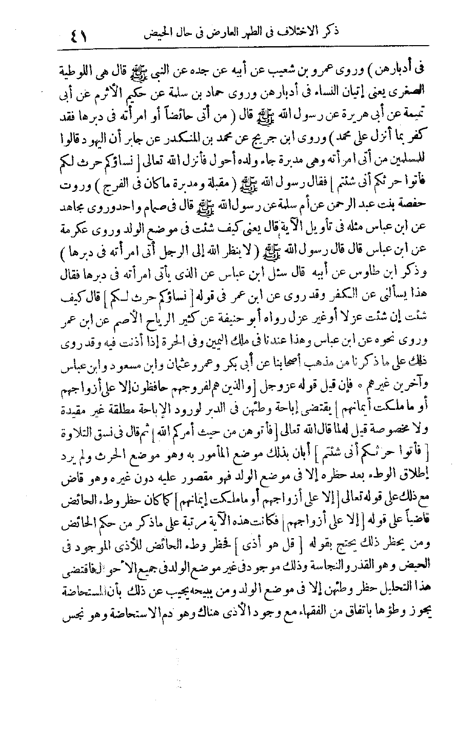 وَرَوَى حَمَّادُ بْنُ سَلَمَةَ عَنْ حَكِيمِ الْأَثْرَمِ عَنْ أَبِي تَمِيمَةَ عَنْ أَبِي هُرَيْرَةَ عَنْ رَسُولِ اللَّهِ صَلَّى اللَّهُ عَلَيْهِ وَسَلَّمَ قَالَ (مَنْ أَتَى حَائِضًا أو امرأته فِي دُبُرِهَا فَقَدْ كَفَرَ بِمَا أُنْزِلَ عَلَى مُحَمَّدٍ)