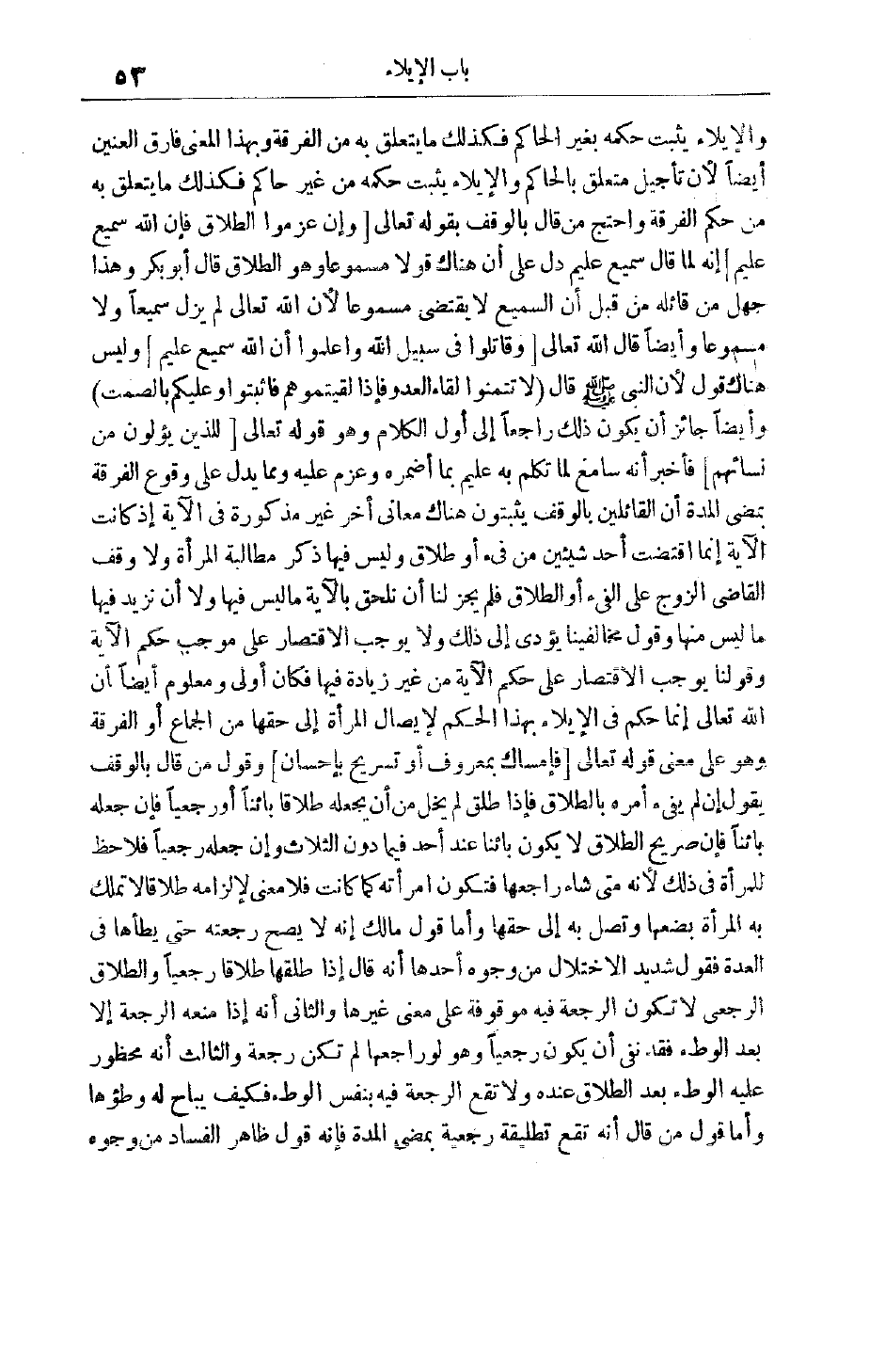 وَالْإِيلَاءُ يَثْبُتُ حُكْمُهُ بِغَيْرِ الْحَاكِمِ فَكَذَلِكَ مَا يَتَعَلَّقُ بِهِ مِنْ الْفُرْقَةِ وَبِهَذَا الْمَعْنَى فَارَقَ العنين أيضا لأن تأجيل مُتَعَلِّقٌ بِالْحَاكِمِ وَالْإِيلَاءُ يَثْبُتُ حُكْمُهُ مِنْ غَيْرِ حَاكِمٍ فَكَذَلِكَ مَا يَتَعَلَّقُ بِهِ مِنْ حُكْمِ الْفُرْقَةِ وَاحْتَجَّ مَنْ قَالَ بِالْوَقْفِ بِقَوْلِهِ تَعَالَى وَإِنْ عَزَمُوا الطَّلاقَ فَإِنَّ اللَّهَ سَمِيعٌ عَلِيمٌ أَنَّهُ لَمَّا قَالَ سَمِيعٌ عَلِيمٌ دَلَّ عَلَى أَنَّ هُنَاكَ قَوْلًا مَسْمُوعًا وَهُوَ الطَّلَاقُ قَالَ أَبُو بَكْرٍ وَهَذَا جَهْلٌ مِنْ قَائِلِهِ مِنْ قِبَلِ أَنَّ السَّمِيعَ لَا يَقْتَضِي مَسْمُوعًا لِأَنَّ الله تعالى لم يزل سميعا ولا مسموعا وَأَيْضًا قَالَ اللَّهُ تَعَالَى وَقاتِلُوا فِي سَبِيلِ اللَّهِ وَاعْلَمُوا أَنَّ اللَّهَ سَمِيعٌ عَلِيمٌ وَلَيْسَ هُنَاكَ