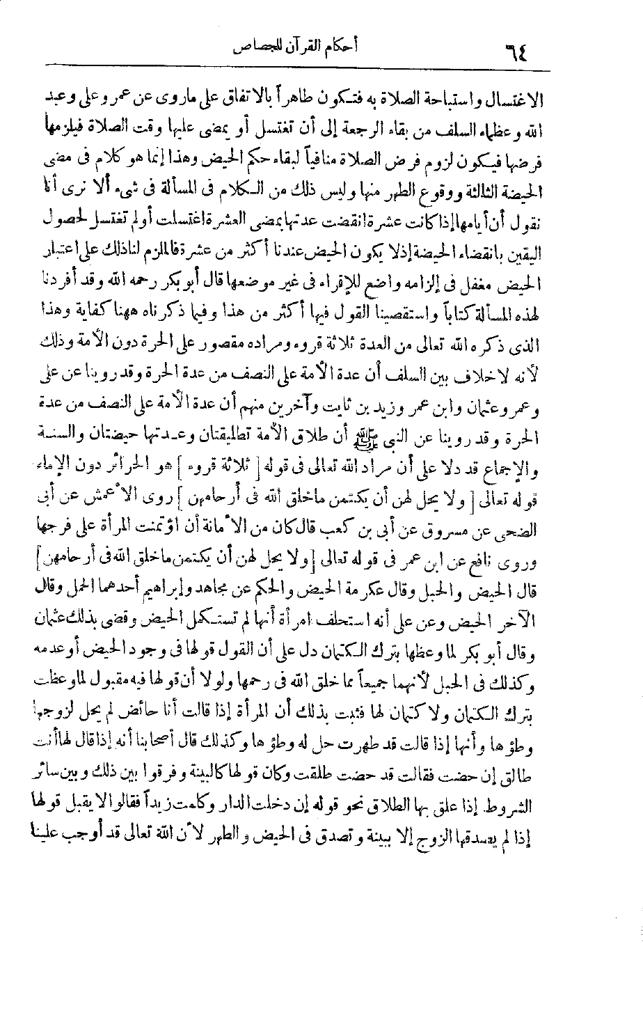 وقضى بذلك عثمان وقال أَبُو بَكْرٍ لَمَّا وَعَظَهَا بِتَرْكِ الْكِتْمَانِ دَلَّ عَلَى أَنَّ الْقَوْلَ قَوْلُهَا فِي وُجُودِ الْحَيْضِ أَوْ عَدَمِهِ وَكَذَلِكَ فِي الْحَبَلِ لِأَنَّهُمَا جَمِيعًا مِمَّا خَلَقَ اللَّهُ فِي رَحِمِهَا وَلَوْلَا أَنَّ قَوْلَهَا فِيهِ مَقْبُولٌ لَمَا وُعِظَتْ بِتَرْكِ الْكِتْمَانِ وَلَا كِتْمَانَ لَهَا فَثَبَتَ بِذَلِكَ أَنَّ الْمَرْأَةَ إذَا قَالَتْ أَنَا حَائِضٌ لَمْ يَحِلَّ لِزَوْجِهَا وَطْؤُهَا وَأَنَّهَا إذَا قَالَتْ قَدْ طَهُرْت حَلَّ لَهُ وَطْؤُهَا وَكَذَلِكَ قَالَ أَصْحَابُنَا أَنَّهُ إذَا قَالَ لَهَا أَنْتِ طَالِقٌ إنْ حِضْت فَقَالَتْ قَدْ حِضْت طَلُقَتْ وَكَانَ قَوْلُهَا كَالْبَيِّنَةِ وَفَرَّقُوا بَيْنَ ذَلِكَ وَبَيْنَ سَائِرِ الشُّرُوطِ إذَا عُلِّقَ بِهَا الطَّلَاقُ نَحْوَ قَوْلِهِ إنْ دَخَلْت الدَّارَ وكلمت زَيْدًا فَقَالُوا لَا يُقْبَلُ قَوْلُهَا إذَا لَمْ يُصَدِّقْهَا الزَّوْجُ إلَّا بِبَيِّنَةٍ وَتُصَدَّقُ فِي الْحَيْضِ وَالطُّهْرِ لِأَنَّ اللَّهَ تَعَالَى قَدْ أَوْجَبَ عَلَيْنَا