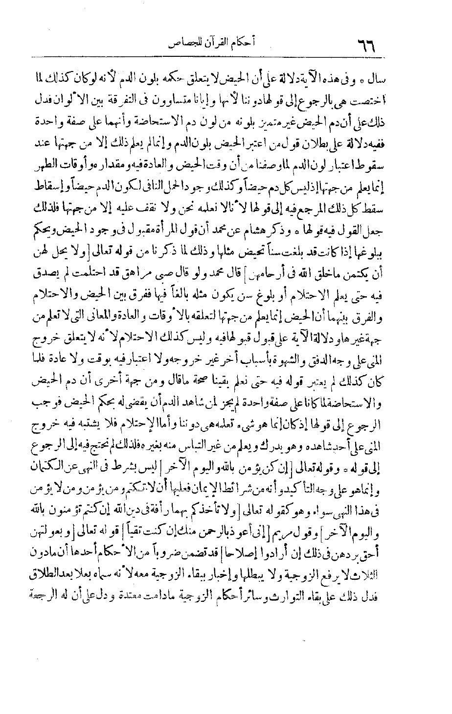 نَحْنُ وَلَا نَقِفُ عَلَيْهِ إلَّا مِنْ جِهَتِهَا فَلِذَلِكَ جُعِلَ الْقَوْلُ فِيهِ قَوْلَهَا وَذَكَرَ هِشَامٌ عَنْ مُحَمَّدٍ أَنَّ قَوْلَ الْمَرْأَةِ مَقْبُولٌ فِي وُجُودِ الْحَيْضِ وَيُحْكَمُ بِبُلُوغِهَا إذَا كَانَتْ قَدْ بَلَغَتْ سِنًّا تَحِيضُ مِثْلُهَا وَذَلِكَ لِمَا ذَكَرْنَا مِنْ قَوْله تَعَالَى وَلا يَحِلُّ لَهُنَّ أَنْ يَكْتُمْنَ مَا خَلَقَ اللَّهُ فِي أَرْحامِهِنَّ قَالَ مُحَمَّدٌ وَلَوْ قَالَ صَبِيٌّ مُرَاهِقٌ قَدْ احْتَلَمْت لَمْ يُصَدَّقْ فِيهِ حَتَّى يُعْلَمَ الِاحْتِلَامُ أَوْ بُلُوغُ سِنٍّ يَكُونُ مِثْلُهُ بَالِغًا فِيهَا فَفَرْقٌ بَيْنَ الْحَيْضِ وَالِاحْتِلَامِ وَالْفَرْقُ بَيْنَهُمَا أَنَّ الْحَيْضَ إنَّمَا يُعْلَمُ مِنْ جِهَتِهَا لِتَعَلُّقِهِ بِالْأَوْقَاتِ وَالْعَادَةِ وَالْمَعَانِي الَّتِي لَا تُعْلَمُ مِنْ جِهَةِ غيرها ودلالة الآية على قبول قبولها فِيهِ وَلَيْسَ كَذَلِكَ الِاحْتِلَامُ لِأَنَّهُ لَا يَتَعَلَّقُ خُرُوجُ الْمَنِيِّ عَلَى وَجْهِ الدَّفْقِ وَالشَّهْوَةِ بِأَسْبَابٍ أُخَرَ غَيْرَ خُرُوجِهِ وَلَا اعْتِبَارَ فِيهِ بِوَقْتٍ وَلَا عَادَةٍ فَلَمَّا كَانَ كَذَلِكَ لَمْ يُعْتَبَرْ قَوْلُهُ فِيهِ حَتَّى نَعْلَمَ يَقِينًا صِحَّةَ مَا قَالَ وَمِنْ جِهَةٍ أُخْرَى أَنَّ دَمَ الْحَيْضِ وَالِاسْتِحَاضَةِ لَمَّا كَانَا عَلَى صِفَةٍ وَاحِدَةٍ لَمْ يَجُزْ لِمَنْ شَاهَدَ الدَّمَ أَنْ يَقْضِيَ لَهُ بِحُكْمِ الْحَيْضِ فَوَجَبَ الرُّجُوعُ إلَى قَوْلِهَا إذْ كان إنَّمَا هُوَ شَيْءٌ تَعْلَمُهُ هِيَ دُونَنَا وَأَمَّا الِاحْتِلَامُ فَلَا يَشْتَبِهُ فِيهِ خُرُوجُ الْمَنِيِّ عَلَى أَحَدٍ شَاهَدَهُ وَهُوَ يُدْرَكُ وَيُعْلَمُ مِنْ غَيْرِ الْتِبَاسٍ مِنْهُ بِغَيْرِهِ فَلِذَلِكَ لَمْ نَحْتَجْ فِيهِ إلَى الرُّجُوعِ إلَى قَوْلِهِ وقَوْله تَعَالَى إِنْ كُنَّ يُؤْمِنَّ بِاللَّهِ وَالْيَوْمِ الْآخِرِ لَيْسَ بِشَرْطٍ فِي النَّهْيِ عَنْ الْكِتْمَانِ وَإِنَّمَا هُوَ عَلَى وَجْهِ التَّأْكِيدِ وَأَنَّهُ مِنْ شَرَائِطِ الْإِيمَانِ فَعَلَيْهَا أَنْ لَا تَكْتُمَ وَمَنْ يُؤْمِنُ وَمَنْ لَا يُؤْمِنُ فِي هَذَا النَّهْيِ سَوَاءٌ وَهُوَ كَقَوْلِهِ تَعَالَى وَلا تَأْخُذْكُمْ بِهِما رَأْفَةٌ فِي دِينِ اللَّهِ إِنْ كُنْتُمْ تُؤْمِنُونَ بِاللَّهِ وَالْيَوْمِ الْآخِرِ وَقَوْلِ مَرْيَمَ إِنِّي أَعُوذُ بِالرَّحْمنِ مِنْكَ إِنْ كُنْتَ تَقِيًّا