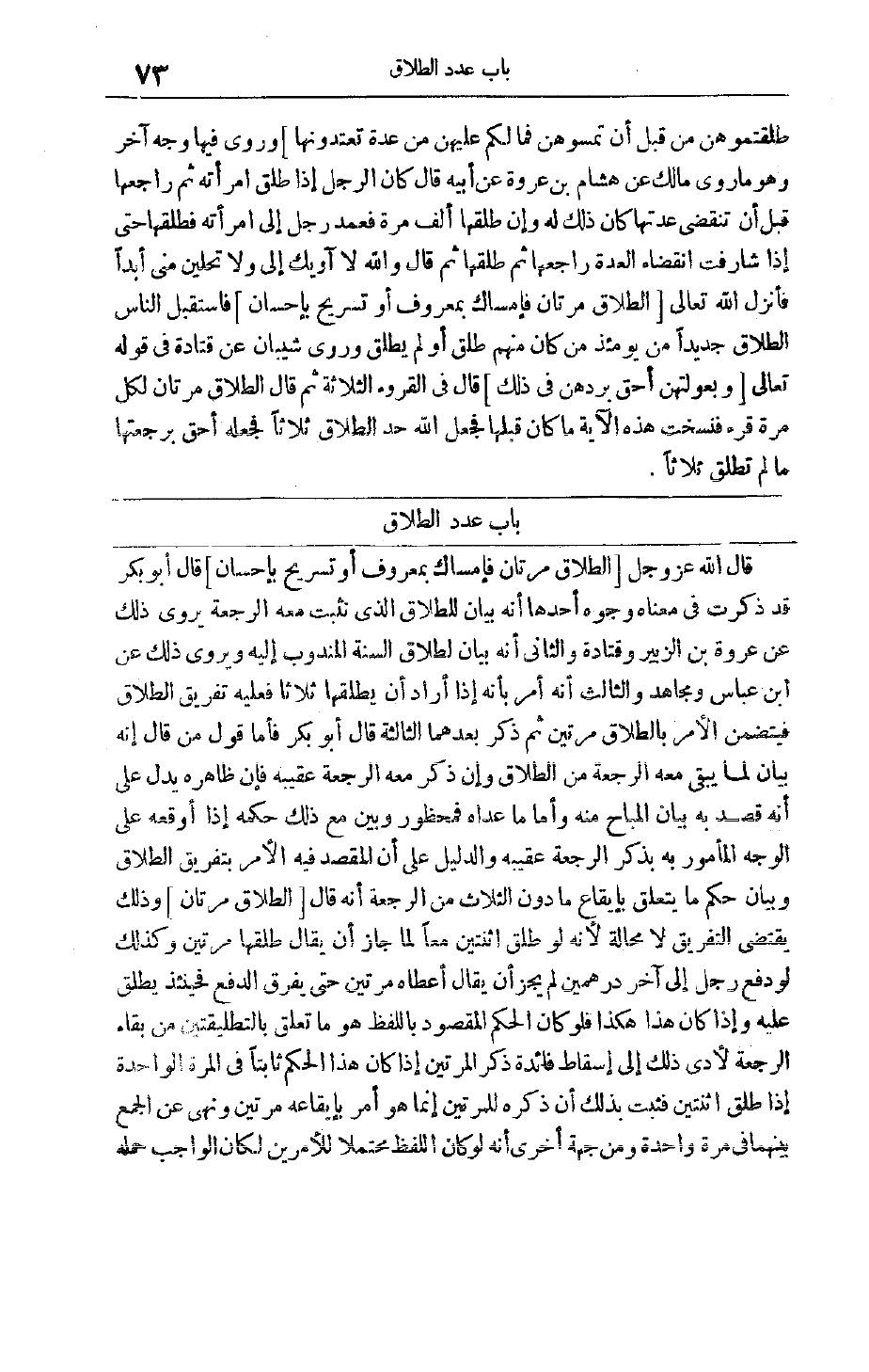 قَالَ اللَّهُ عَزَّ وَجَلَّ الطَّلاقُ مَرَّتانِ فَإِمْساكٌ بِمَعْرُوفٍ أَوْ تَسْرِيحٌ بِإِحْسانٍ قَالَ أَبُو بَكْرٍ قَدْ ذُكِرَتْ فِي مَعْنَاهُ وجوه أحدها أنه بيان للطلاق الذي نثبت مَعَهُ الرَّجْعَةُ يُرْوَى ذَلِكَ عَنْ عُرْوَةَ بْنِ الزُّبَيْرِ وَقَتَادَةَ وَالثَّانِي أَنَّهُ بَيَانٌ لِطَلَاقِ السُّنَّةِ الْمَنْدُوبِ إلَيْهِ وَيُرْوَى ذَلِكَ عَنْ ابْنِ عَبَّاسٍ وَمُجَاهِدٍ وَالثَّالِثُ أَنَّهُ أَمَرَ بِأَنَّهُ إذَا أَرَادَ أَنْ يُطَلِّقَهَا ثَلَاثًا فَعَلَيْهِ تَفْرِيقُ الطَّلَاقِ فَيَتَضَمَّنُ الْأَمْرَ بِالطَّلَاقِ مَرَّتَيْنِ ثُمَّ ذَكَرَ بَعْدَهُمَا الثَّالِثَةَ قَالَ أَبُو بَكْرٍ فَأَمَّا قَوْلُ مَنْ قَالَ إنَّهُ بَيَانٌ لِمَا يَبْقَى مَعَهُ الرَّجْعَةُ مِنْ الطلاق وَإِنْ ذَكَرَ مَعَهُ الرَّجْعَةَ عَقِيبَهُ فَإِنَّ ظَاهِرَهُ يَدُلُّ عَلَى أَنَّهُ قَصَدَ بِهِ بَيَانَ الْمُبَاحِ مِنْهُ وَأَمَّا مَا عَدَاهُ فَمَحْظُورٌ وَبَيَّنَ مَعَ ذَلِكَ حُكْمَهُ إذَا أَوْقَعَهُ عَلَى الْوَجْهِ الْمَأْمُورِ بِهِ بِذِكْرِ الرَّجْعَةِ عَقِيبَهُ وَالدَّلِيلُ عَلَى أَنَّ الْمَقْصِدَ فِيهِ الْأَمْرُ بِتَفْرِيقِ الطَّلَاقِ وَبَيَانُ حُكْمِ مَا يَتَعَلَّقُ بِإِيقَاعِ مَا دُونَ الثَّلَاثِ مِنْ الرجعة أنه قال الطَّلاقُ مَرَّتانِ وَذَلِكَ يَقْتَضِي التَّفْرِيقَ لَا مَحَالَةَ لِأَنَّهُ لَوْ طَلَّقَ اثْنَتَيْنِ مَعًا لَمَا جَازَ أَنْ يُقَالَ طلقها مرتين وكذلك لَوْ دَفَعَ رَجُلٌ إلَى آخَرَ دِرْهَمَيْنِ لَمْ يَجُزْ أَنْ يُقَالَ أَعْطَاهُ مَرَّتَيْنِ حَتَّى يُفَرِّقَ الدَّفْعَ فَحِينَئِذٍ يُطْلَقُ عَلَيْهِ وَإِذَا كَانَ هَذَا هَكَذَا فَلَوْ كَانَ الْحُكْمُ الْمَقْصُودُ بِاللَّفْظِ هُوَ مَا تَعَلَّقَ بِالتَّطْلِيقَتَيْنِ مِنْ بَقَاءِ الرَّجْعَةِ لَأَدَّى ذلك إلى إسقاط فائدة ذكر المرتين إذا كَانَ هَذَا الْحُكْمُ ثَابِتًا فِي الْمَرَّةِ الْوَاحِدَةِ إذَا طَلَّقَ اثْنَتَيْنِ فَثَبَتَ بِذَلِكَ أَنَّ ذِكْرَهُ لِلْمَرَّتَيْنِ إنَّمَا هُوَ أَمْرٌ بِإِيقَاعِهِ مَرَّتَيْنِ وَنَهْيٌ عَنْ الْجَمْعِ بَيْنَهُمَا فِي مَرَّةٍ وَاحِدَةٍ وَمِنْ جِهَةٍ أُخْرَى أَنَّهُ لَوْ كَانَ اللَّفْظُ مُحْتَمِلًا لِلْأَمْرَيْنِ لَكَانَ الْوَاجِبُ حَمْلَهُ