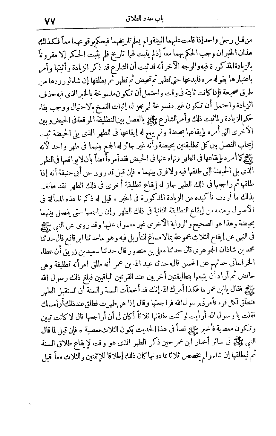فَأَخْبَرَ صَلَّى اللَّهُ عَلَيْهِ وَسَلَّمَ نَصًّا فِي هَذَا الْحَدِيثِ بِكَوْنِ الثَّلَاثِ مَعْصِيَةً فَإِنْ قِيلَ لَمَّا قَالَ النَّبِيُّ صَلَّى اللَّهُ عَلَيْهِ وَسَلَّمَ فِي سَائِرِ أَخْبَارِ ابْنِ عُمَرَ حِينَ ذَكَرَ الطُّهْرَ الَّذِي هُوَ وَقْتٌ لِإِيقَاعِ طَلَاقِ السُّنَّةِ ثُمَّ لِيُطَلِّقْهَا إنْ شَاءَ وَلَمْ يُخَصِّصْ ثَلَاثًا مِمَّا دُونَهَا كَانَ ذَلِكَ إطْلَاقًا لِلِاثْنَتَيْنِ وَالثَّلَاثِ مَعًا قِيلَ
