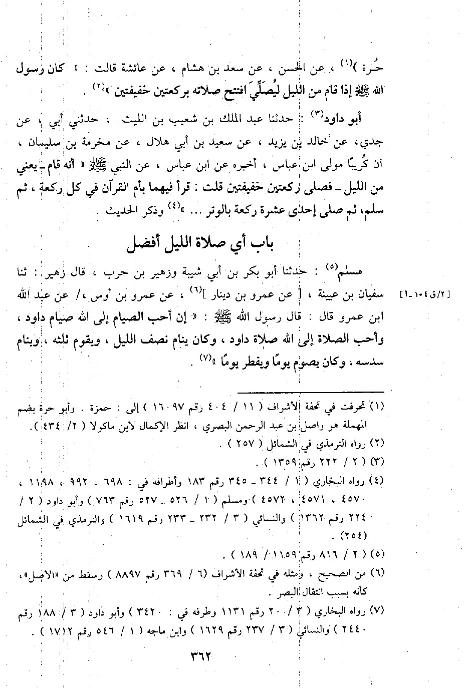 حرَّة) ، عَن الْحسن، عَن سعد بن هِشَام، عَن عَائِشَة قَالَت: " كَانَ رَسُول الله - صَلَّى اللَّهُ عَلَيْهِ وَسَلَّم َ - إِذا قَامَ من اللَّيْل ليُصَلِّي افْتتح صلَاته بِرَكْعَتَيْنِ خفيفتين ".