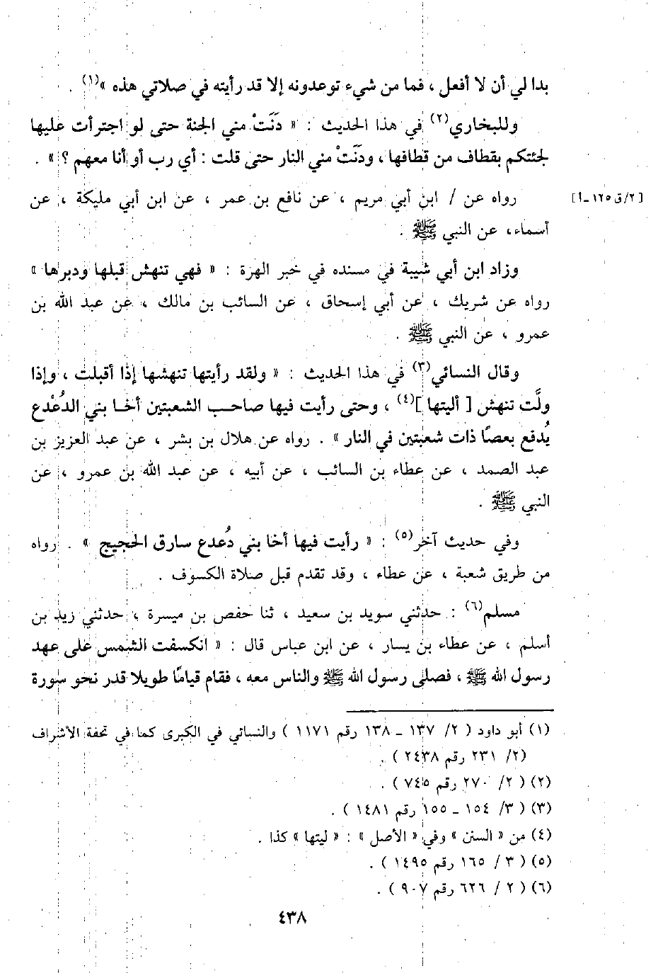 وَقَالَ النَّسَائِيّ فِي هَذَا الحَدِيث: " وَلَقَد رَأَيْتهَا تنهشها إِذا أَقبلت، وَإِذا ولت تنهش [أليتها] ، وَحَتَّى رَأَيْت فِيهَا صَاحب الشعبتين أَخا بني الدعدع يدْفع بعصا ذَات شعبتين فِي النَّار ". رَوَاهُ عَن هِلَال بن بشر، عَن عبد الْعَزِيز بن عبد الصَّمد، عَن عَطاء بن السَّائِب، عَن أَبِيه، عَن عبد الله بن عَمْرو، عَن النَّبِي - صَلَّى اللَّهُ عَلَيْهِ وَسَلَّم َ -.
