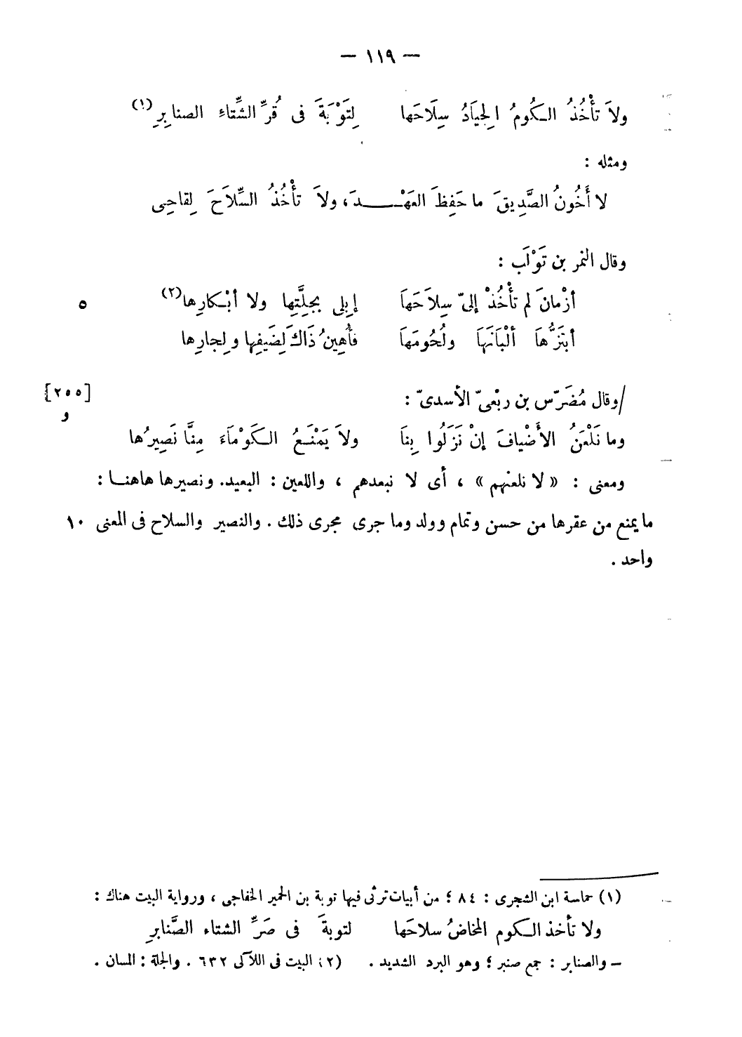ولا تأخذ الكوم الحياد سلاحها … لتوبة فى قرّ الشّتاء الصنابر (¬1)