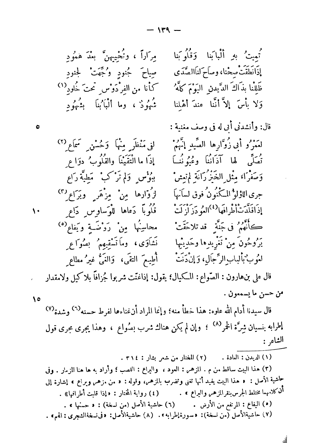 قال سيدنا أدام الله علوه: هذا خطأ منه؛ وإنما المراد أن غناءها لفرط حسنه (¬6) وشدة (¬7) إطرابه ينسيان شرّة الخمر (¬8)؛ وإن لم يكن هناك شرب بصواع، وهذا يجرى مجرى قول الشاعر: