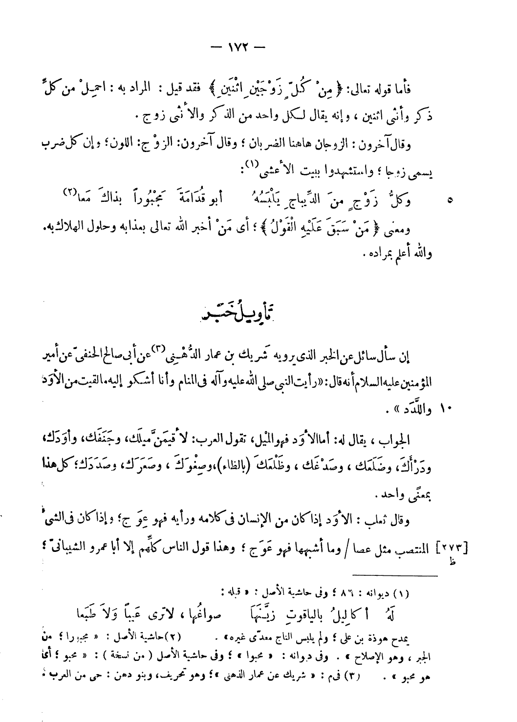 وقال آخرون: الزوجان هاهنا الضربان؛ وقال آخرون: الزوج: اللون؛ وإن كل ضرب يسمى زوجا؛ واستشهدوا ببيت الأعشى (¬1):