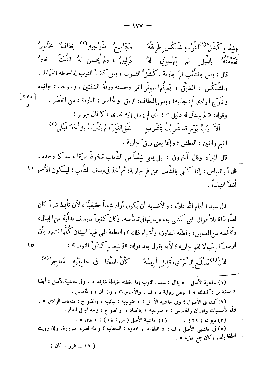 وشعب كشلّ (¬1) الثّوب شكس طريقه … مجامع ضوجيه (¬2) نطاف مخاصر