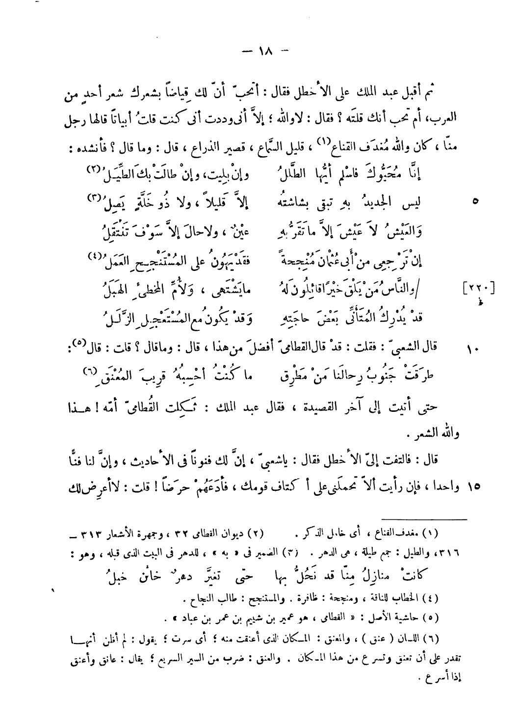 حتى أتيت إلى آخر القصيدة، فقال عبد الملك: ثكلت القطامىّ أمّه! هذا والله الشعر.