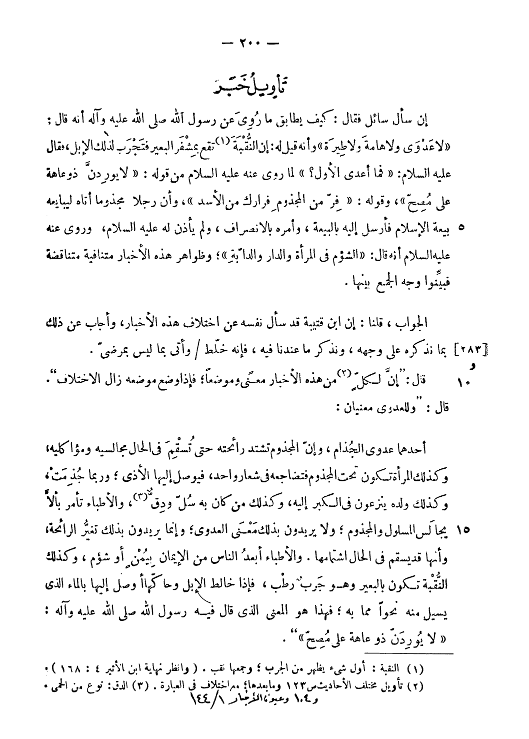 (¬2) تأويل مختلف الأحاديث ص 123 وما بعدها؛ مع اختلاف فى العبارة.
