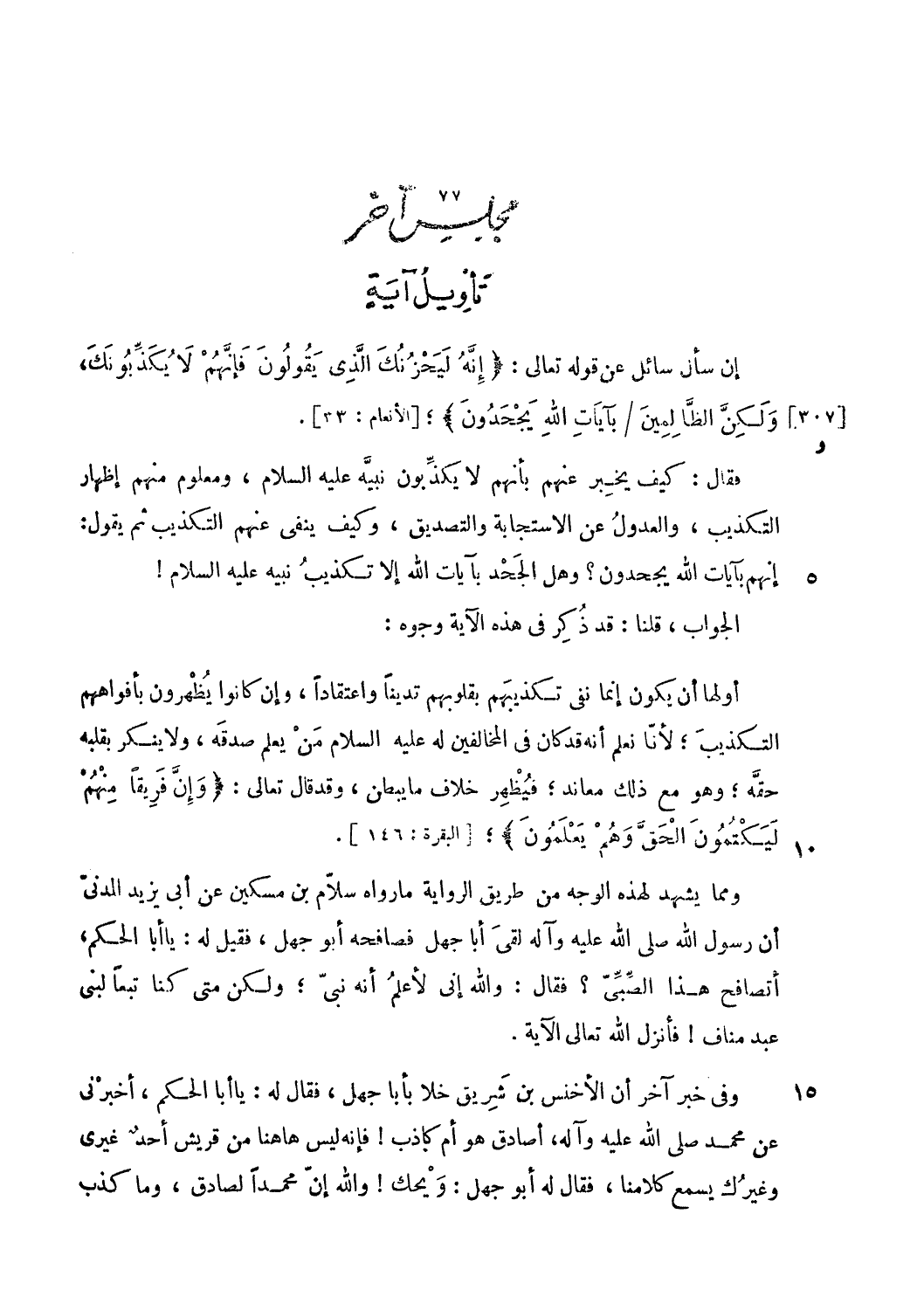 تأويل آية [إِنَّهُ لَيَحْزُنُكَ الَّذِي يَقُولُونَ فَإِنَّهُمْ لا يُكَذِّبُونَكَ، وَلكِنَّ الظَّالِمِينَ/ بِآياتِ اللَّهِ يَجْحَدُونَ]