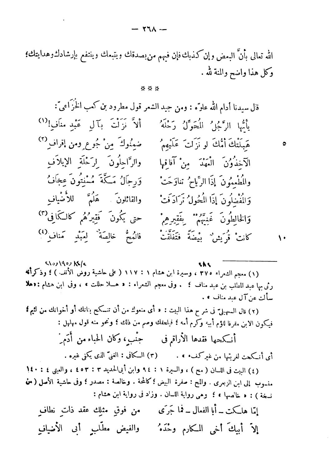 (¬1) معجم الشعراء 375، وسيرة ابن هشام 1: 117 (على حاشية روض الأنف)؛ وذكر أنه رثى بها عبد المطلب بن عبد مناف؛ وفى معجم الشعراء: «هلا حللت»، وفى ابن هشام: «هلا سألت عن آل عبد مناف».