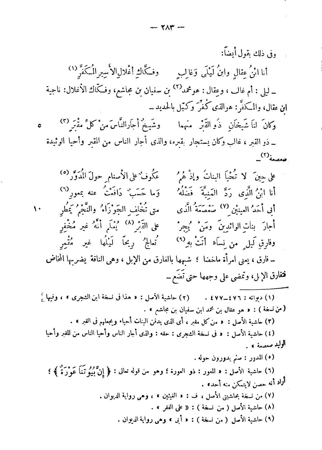 (¬2) حاشية الأصل: «هذا فى نسخة ابن الشجرى»، وفيها (من نسخة): «هو عقال بن محمد ابن سفيان بن مجاشع».