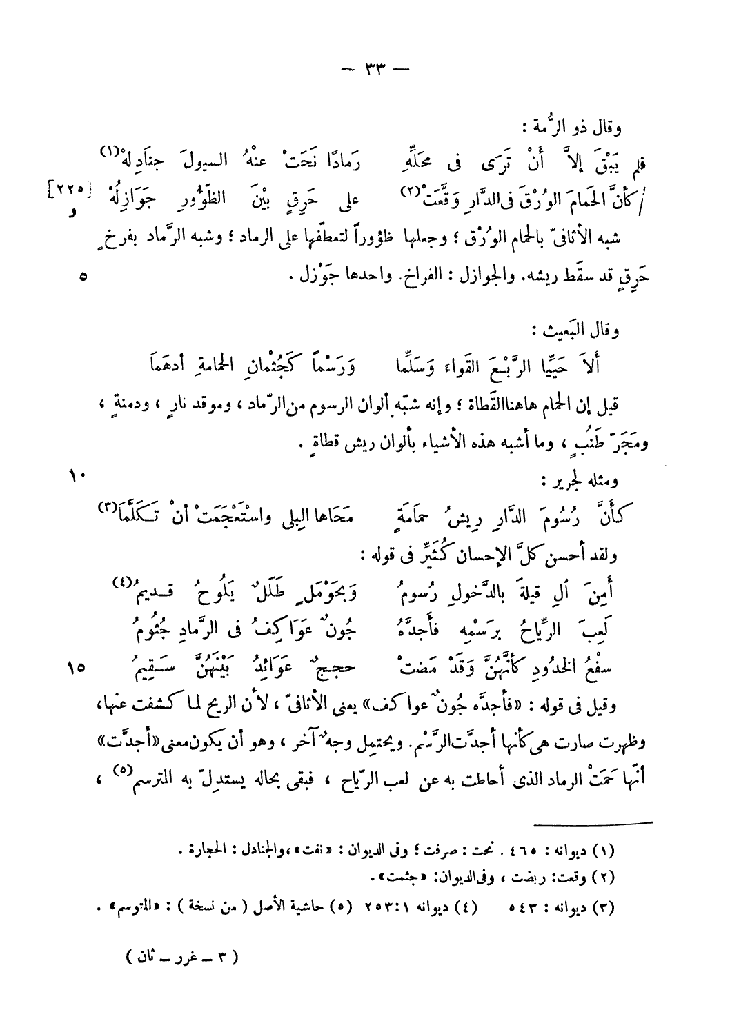 كأنّ رسوم الدّار ريش حمامة … محاها البلى واستعجمت أن تكلّما (¬3)