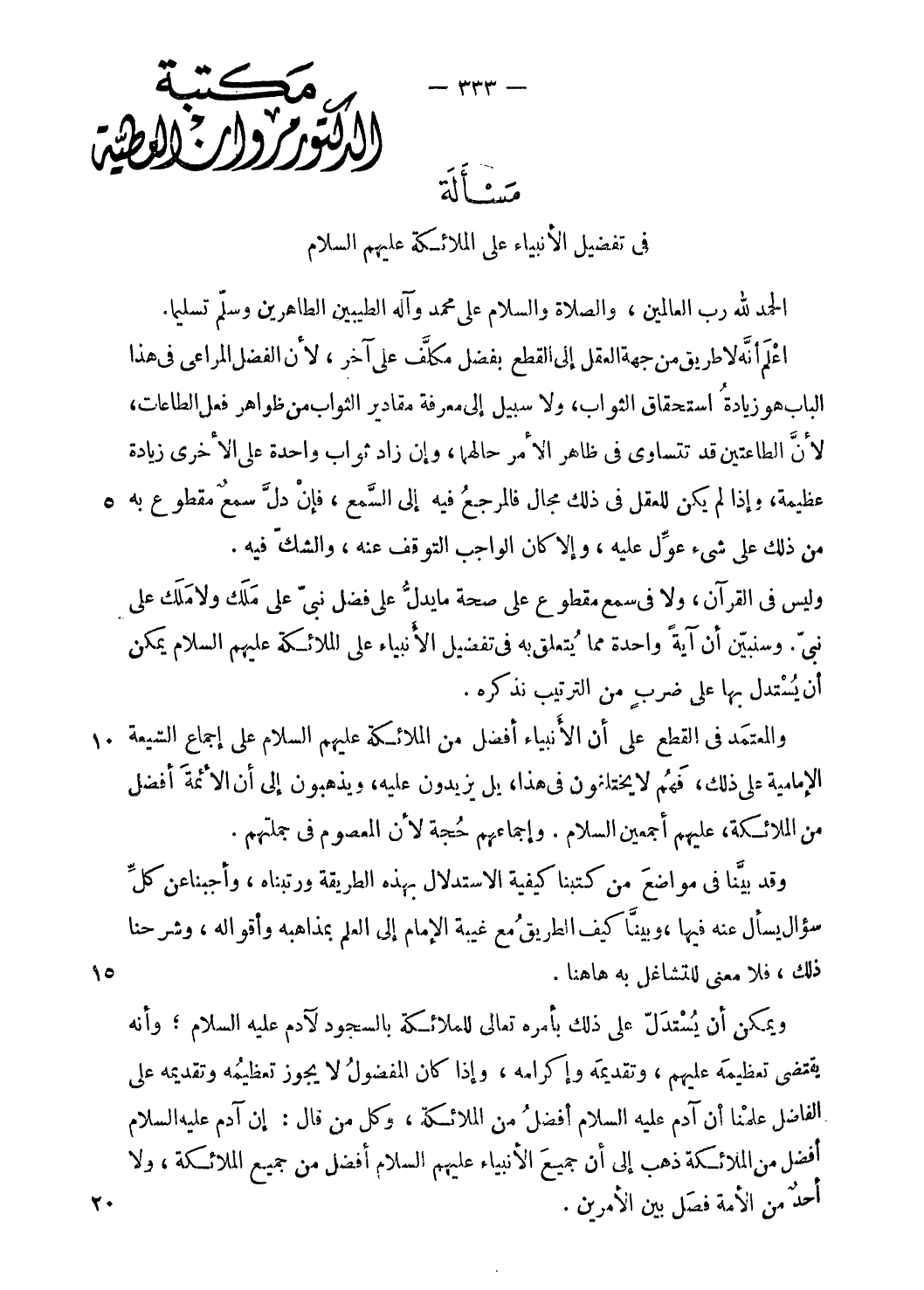 مسألة فى تفضيل الأنبياء على الملائكة عليهم السلام