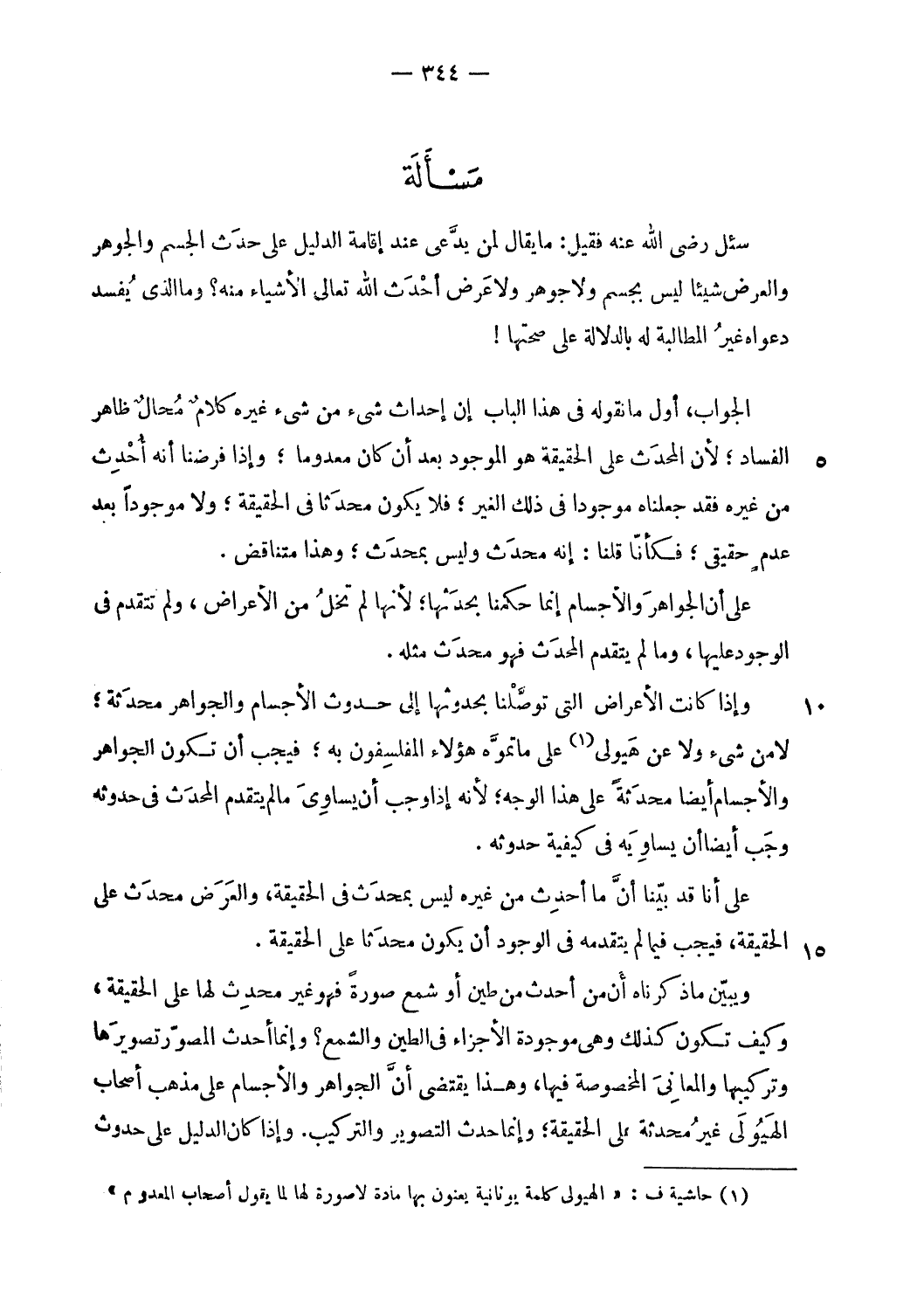 (¬1) حاشية ف: «الهيولى كلمة يونانية يعنون بها مادة لا صورة لها لما يقول أصحاب المعدوم».