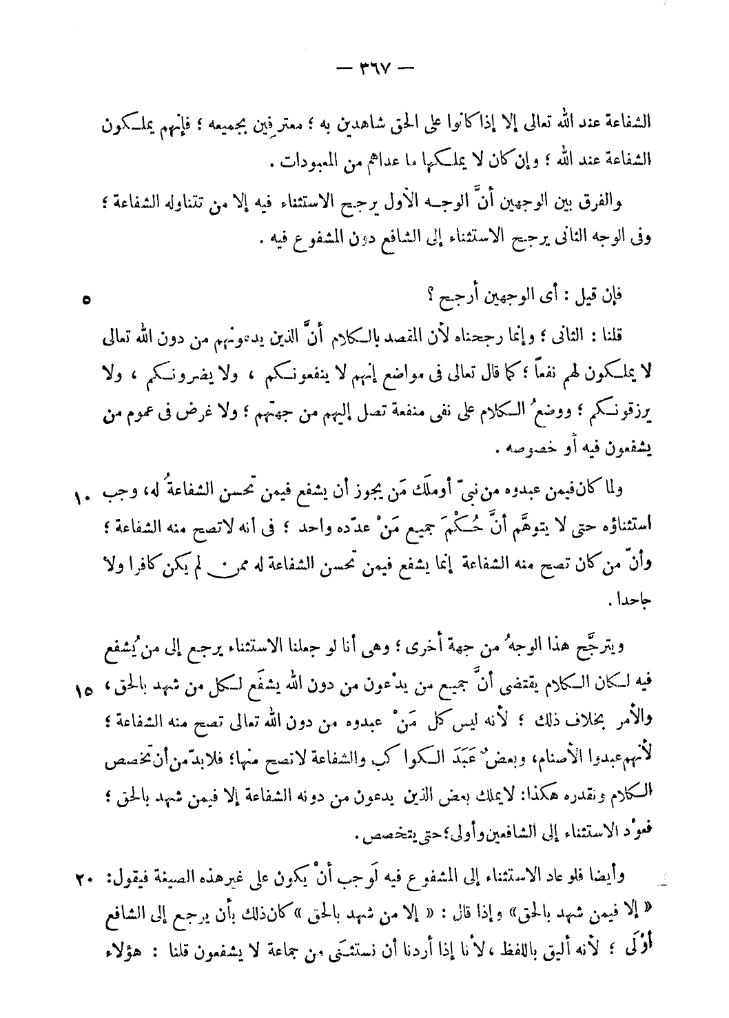 «إلا فيمن شهد بالحق» وإذا قال: «إلا من شهد بالحق» كان ذلك بأن يرجع إلى الشافع أولى؛ لأنه أليق باللفظ، لأنا إذا أردنا أن نستثنى من جماعة لا يشفعون قلنا: هؤلاء