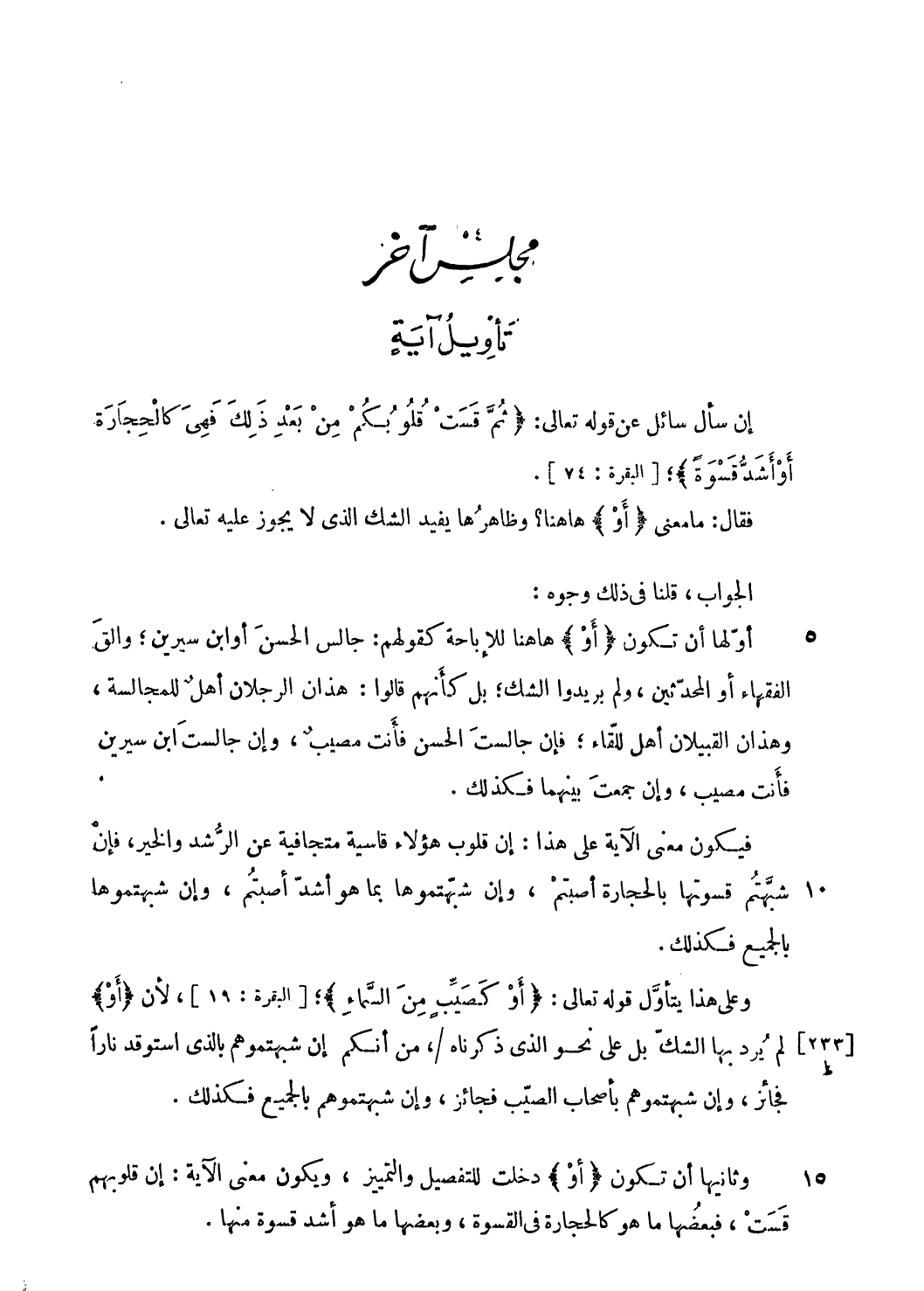 فقال: ما معنى أَوْ هاهنا؟ أو ظاهرها يفيد الشك الّذي لا يجوز عليه تعالى.
