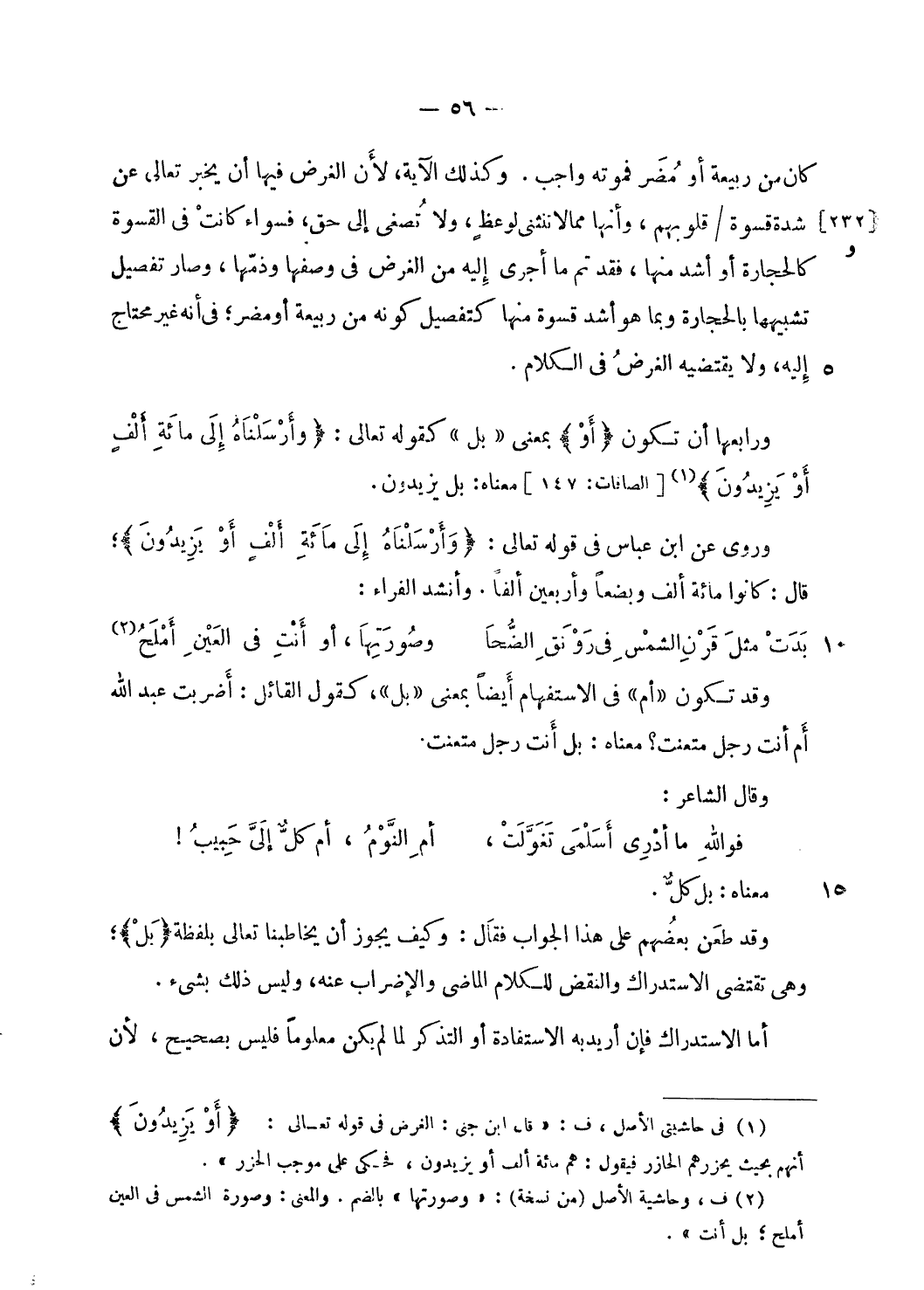 (¬1) فى حاشيتى الأصل، ف: «قال ابن جنى: الغرض فى قوله تعالى: أَوْ يَزِيدُونَ أنهم بحيث يحزرهم الحازر فيقول: هم مائة ألف أو يزيدون، فحكى على موجب الحزر».