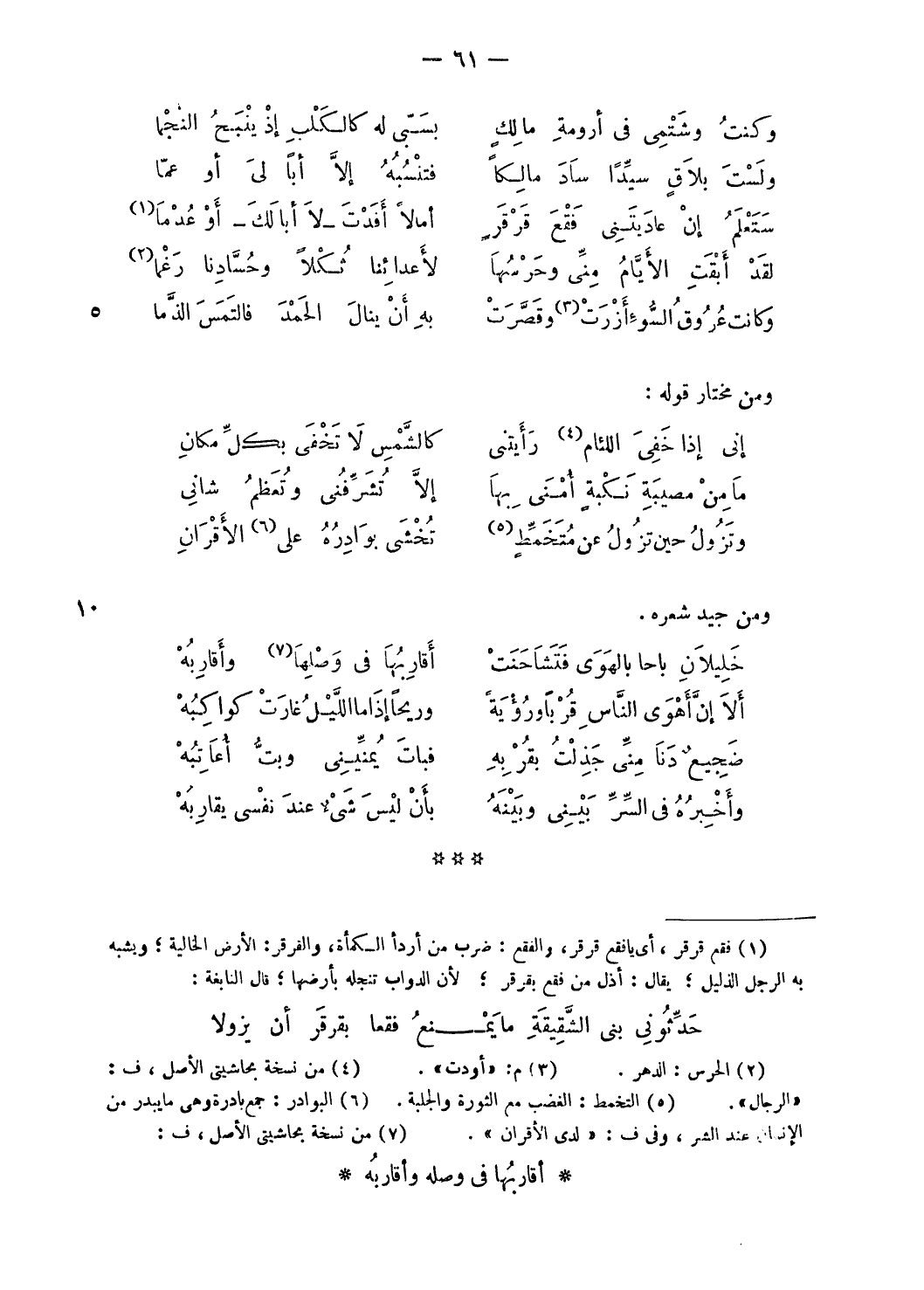 وكنت وشتمى فى أرومة مالك … بسبّى له كالكلب إذ ينبح النجما