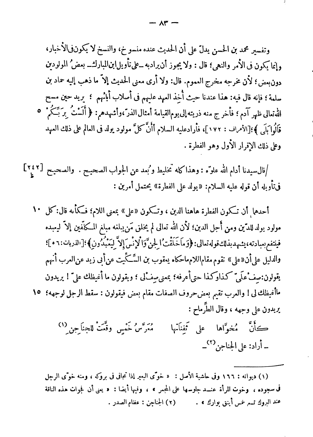؛ [الأعراف: 172]، فأراد عليه السلام أنّ كلّ مولود يولد فى العالم على ذلك العهد وعلى ذلك الإقرار الأول وهو الفطرة.